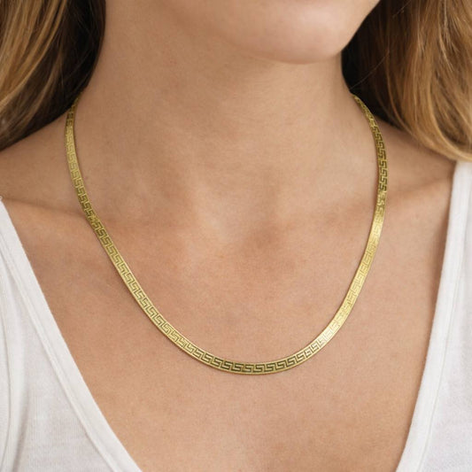 10K Gold Greek Key Herringbone Necklace – 18” 4.5mm