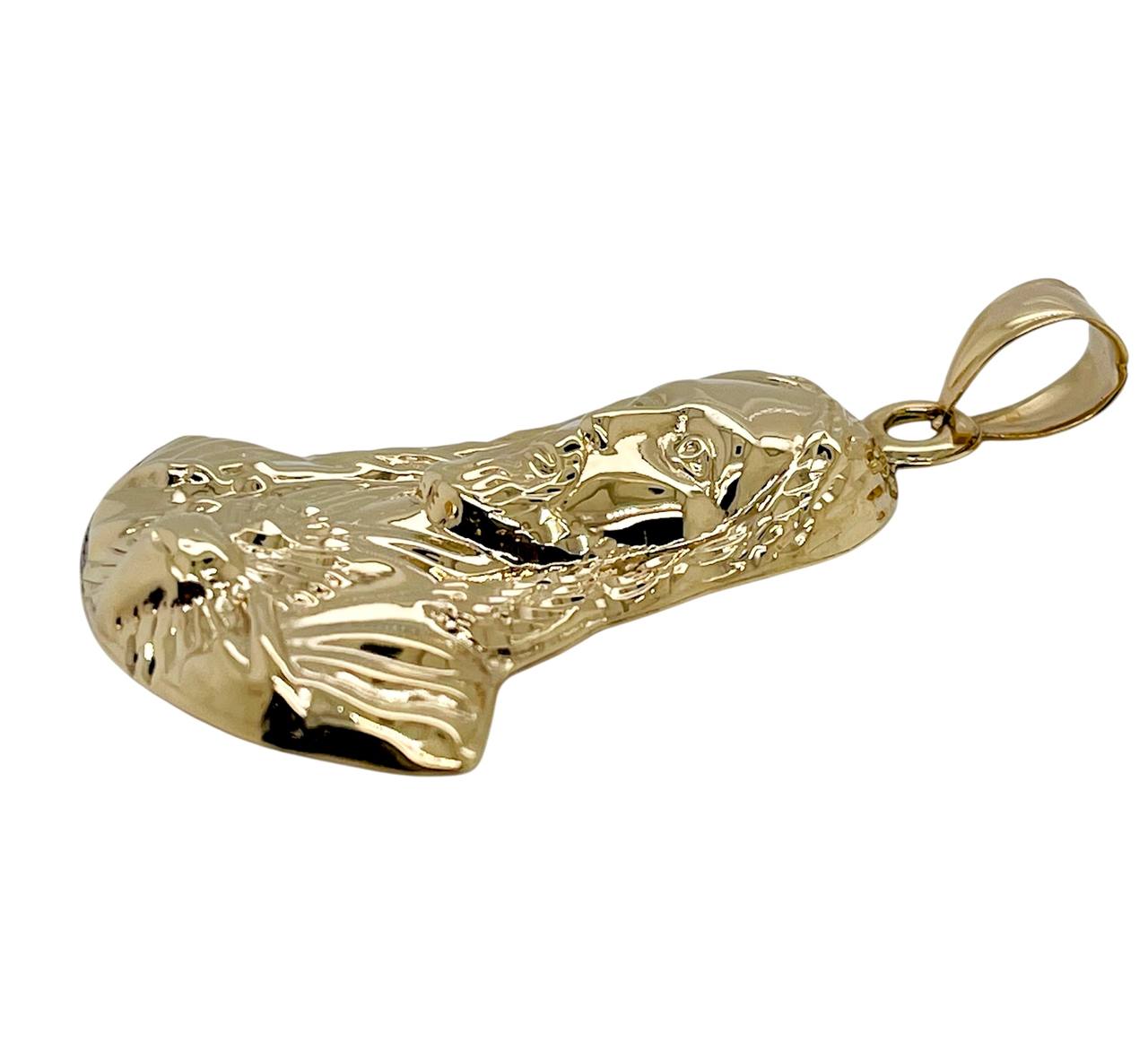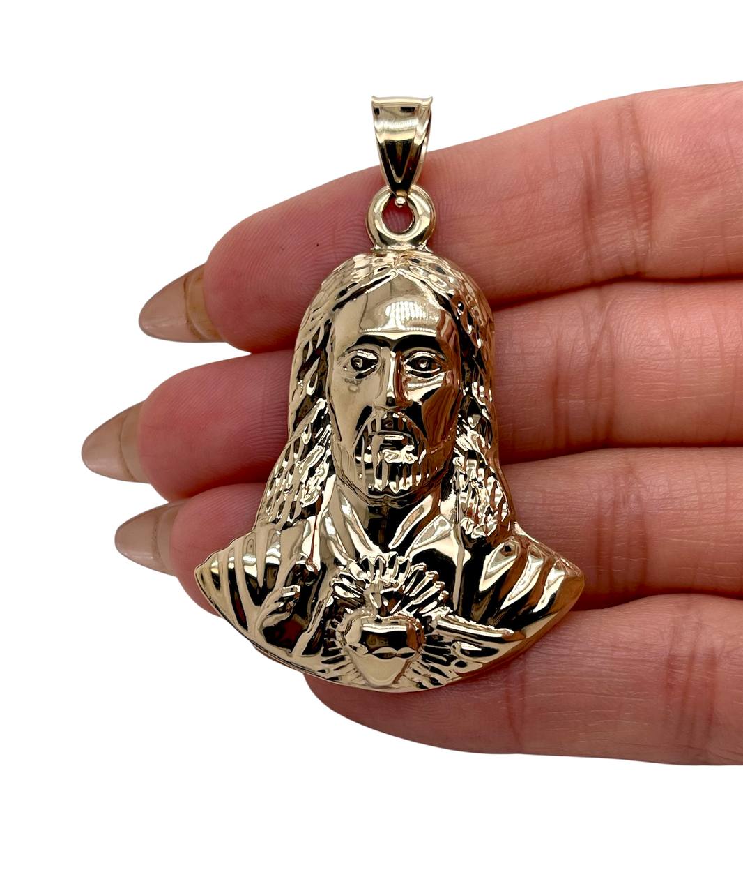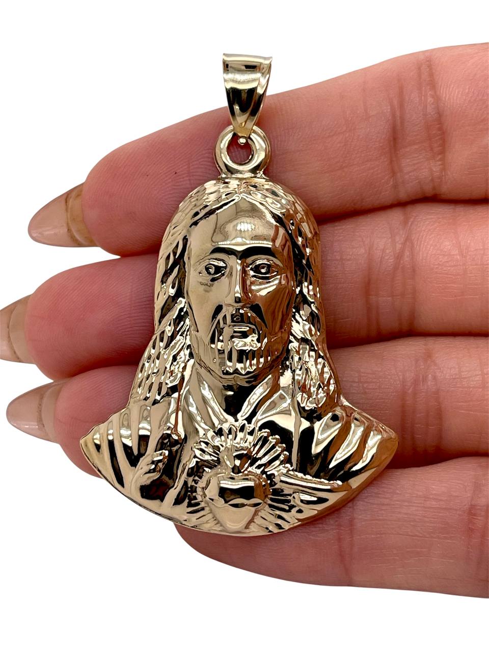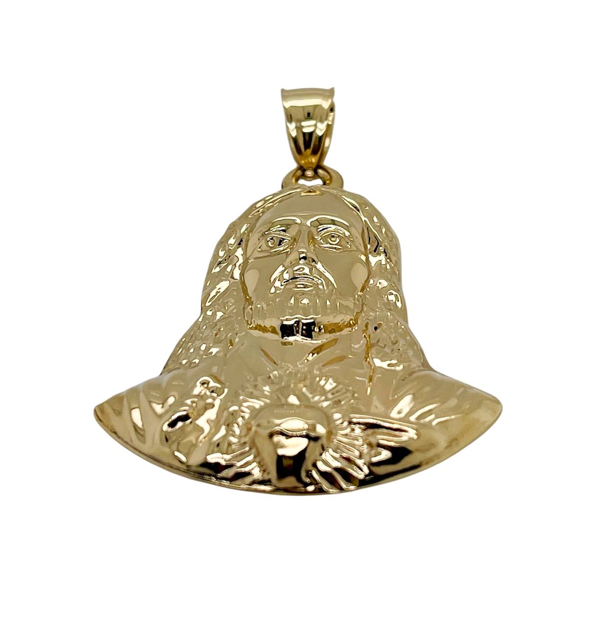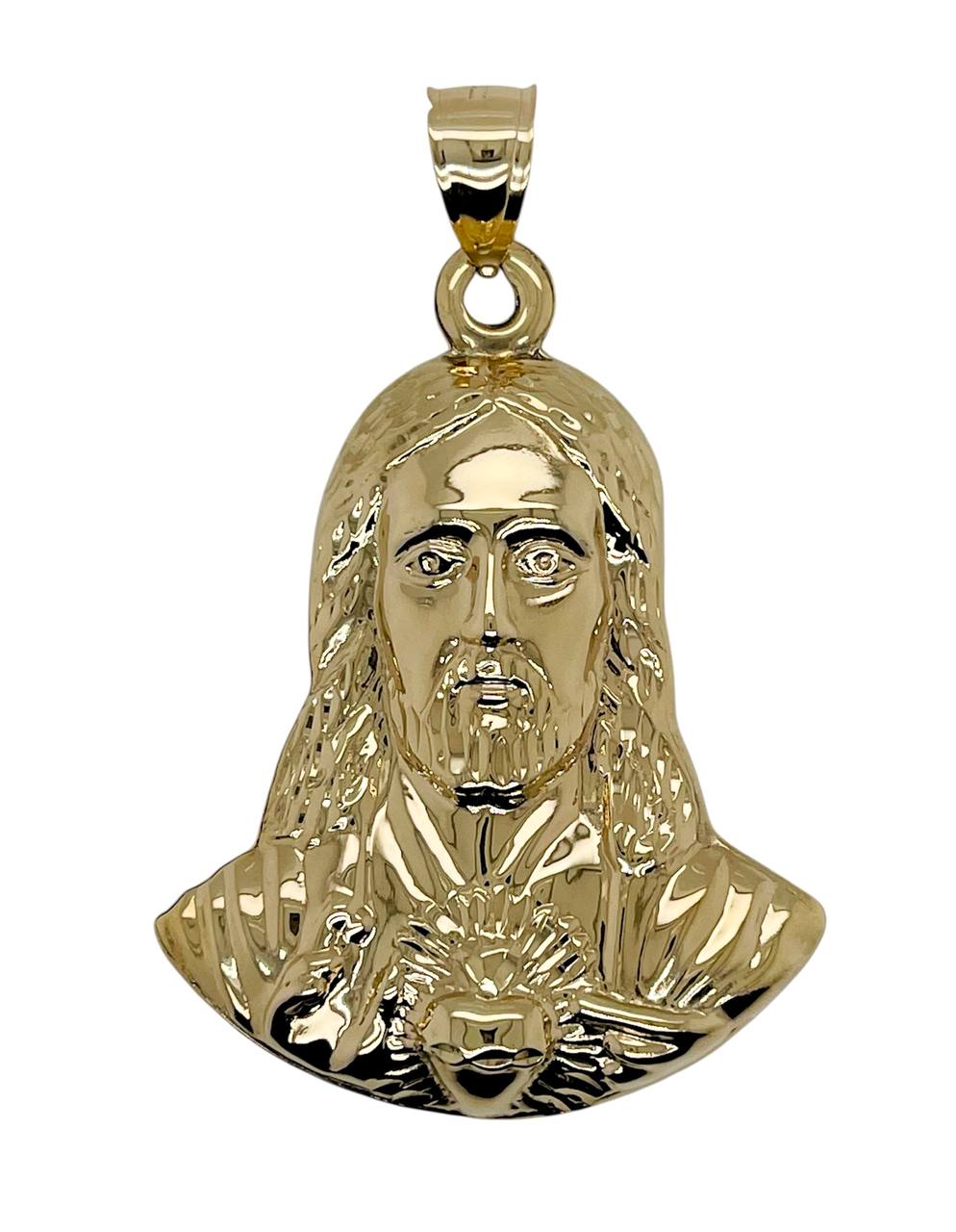 14K Yellow Gold Jesus Head Face Pendant 2 inches 11 grams Sagrado Corazón de Jesús