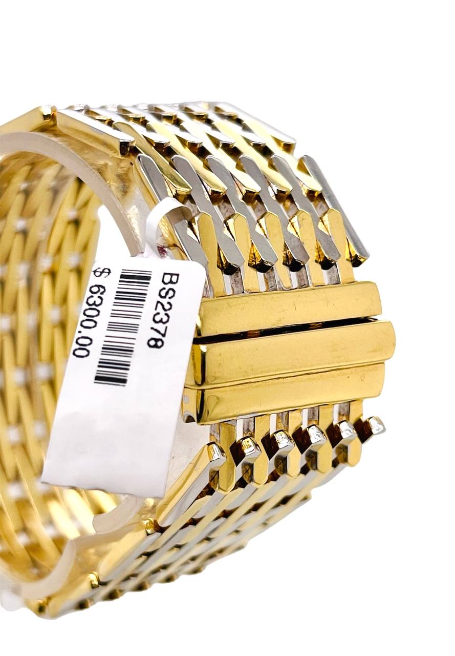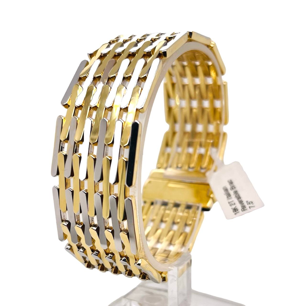 Very beautiful heavy 18k solid yellow and white gold wide reversible bracelet. Weight: 64.7 grams Length approx. : 7.5 inches Width approx. : 21 mm COMES IN A NICE GIFT BOX! YOUR SATISFACTION IS GUARANTEED! Please add me to your Favorites list