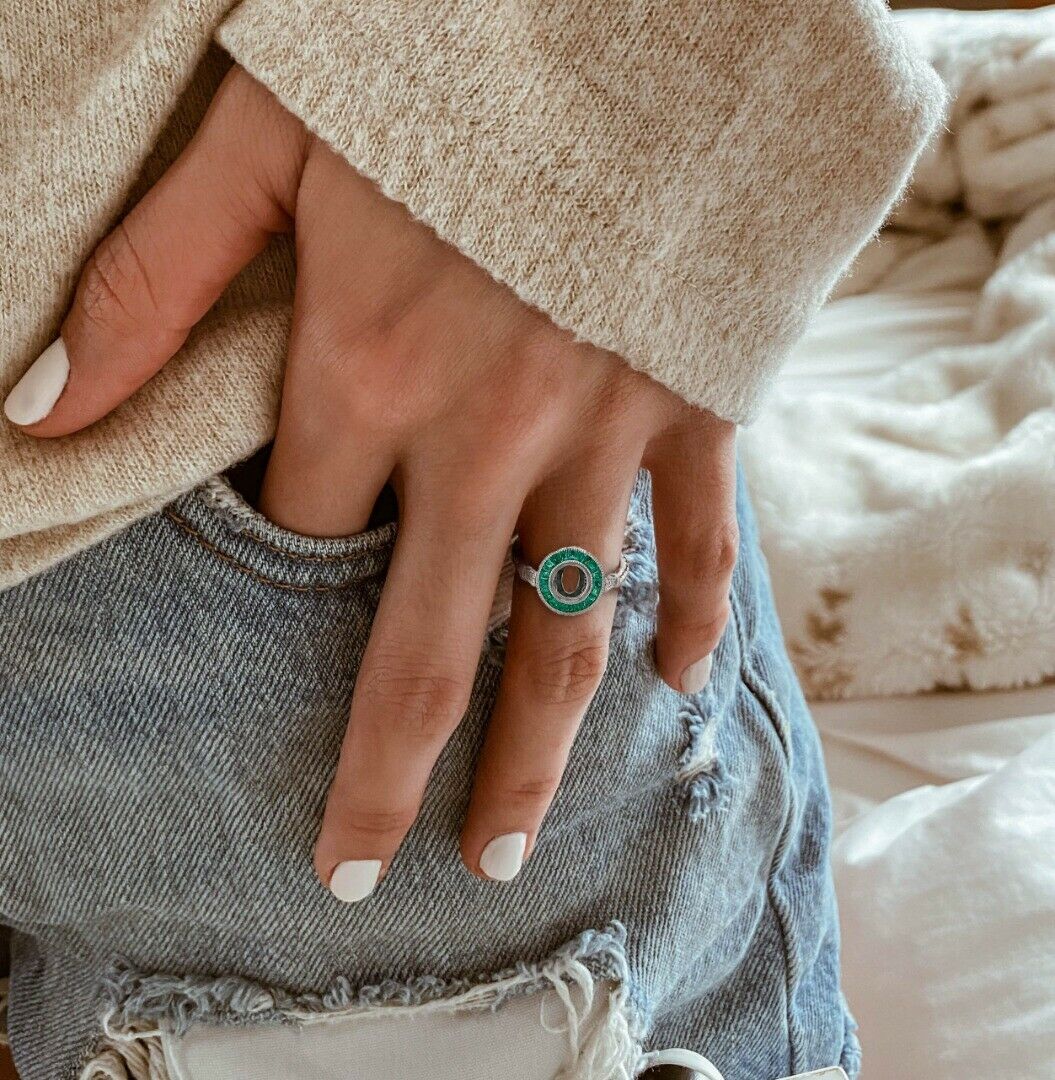 New with tagsVery beautiful and stunning natural diamond and modified cut emerald Art deco style 14k solid white gold semi mount ring.Size: 7 and sizable Ring top size: 12 mmShank width approx. 1.9 mmTotal diamond weight approx. : 0.08 Ct.Total emerald weight approx.: 0.95 Ct.Clarity: VS2Color: FRing weight: 2.8 gramsCenter stone size appx: 6.5 mm round (NOT INCLUDED)COMES IN A NICE GIFT BOX! YOUR SATISFACTION IS GUARANTEED! Please review the description, item condition and pictures carefully before shopping, Thank you!