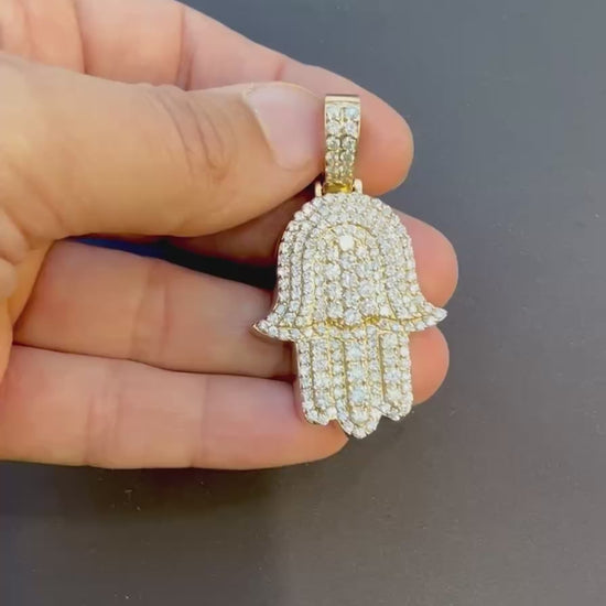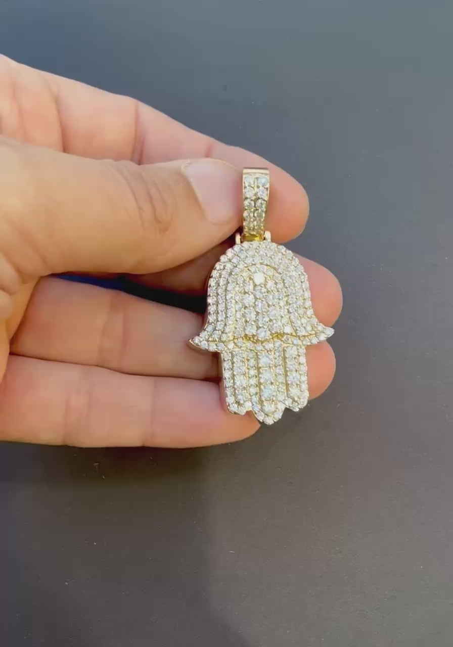 14K Gold Diamond Hamsa Hand Mens Pendant 4.35 Ct Pave Diamonds Hip Hop Protection Charm 33.2g