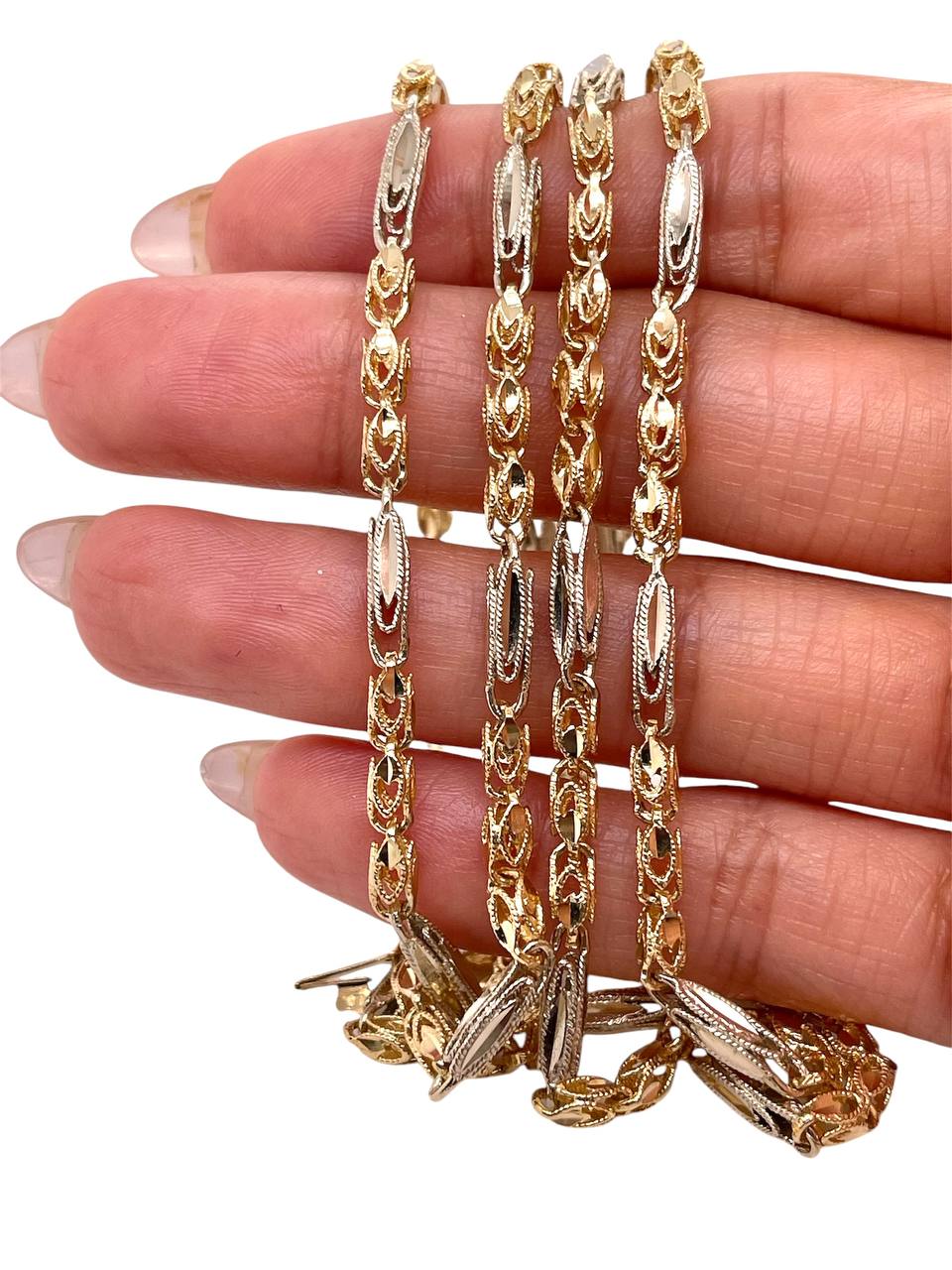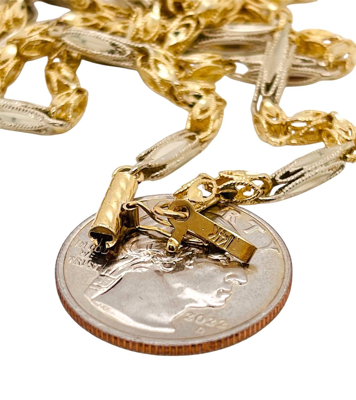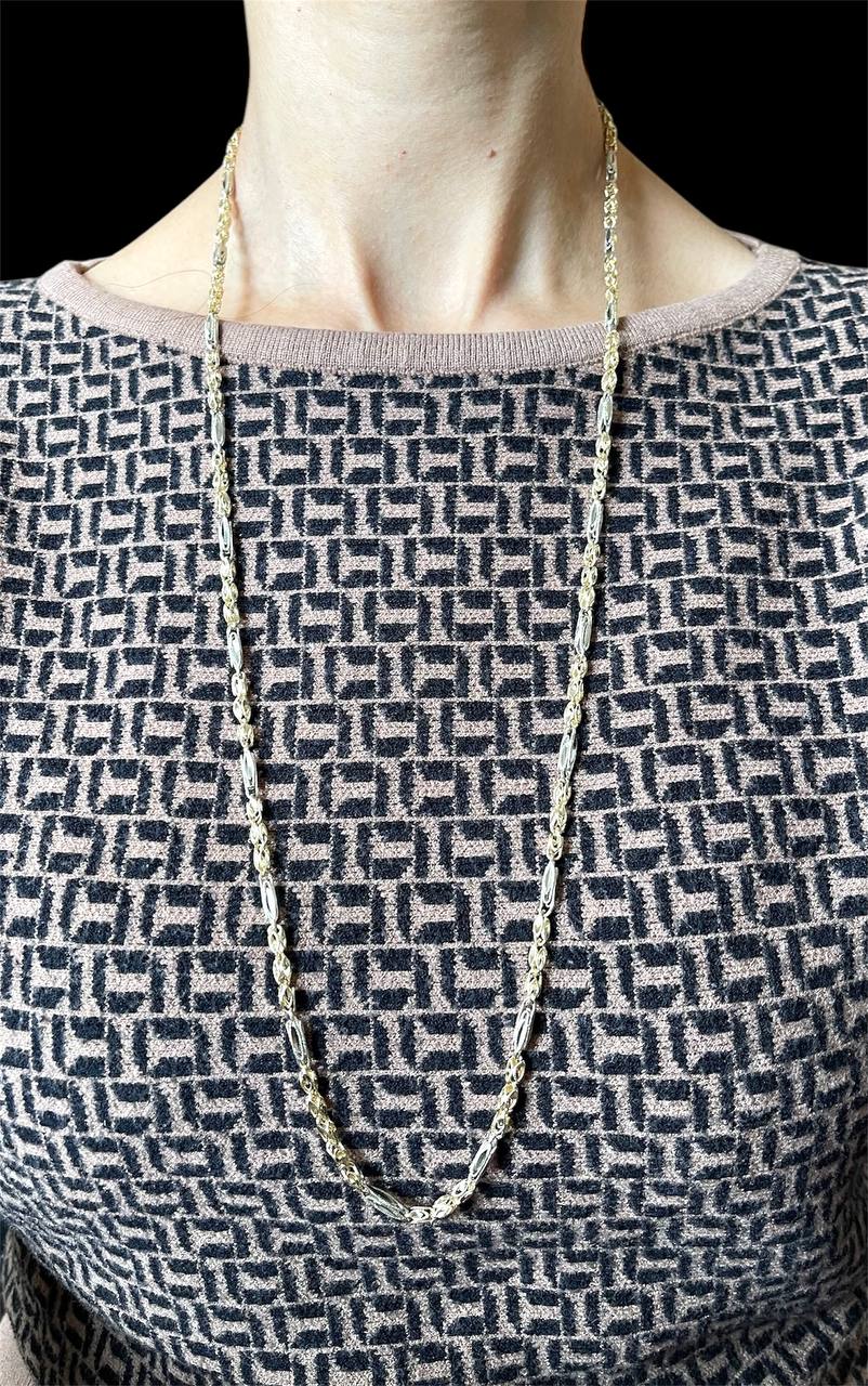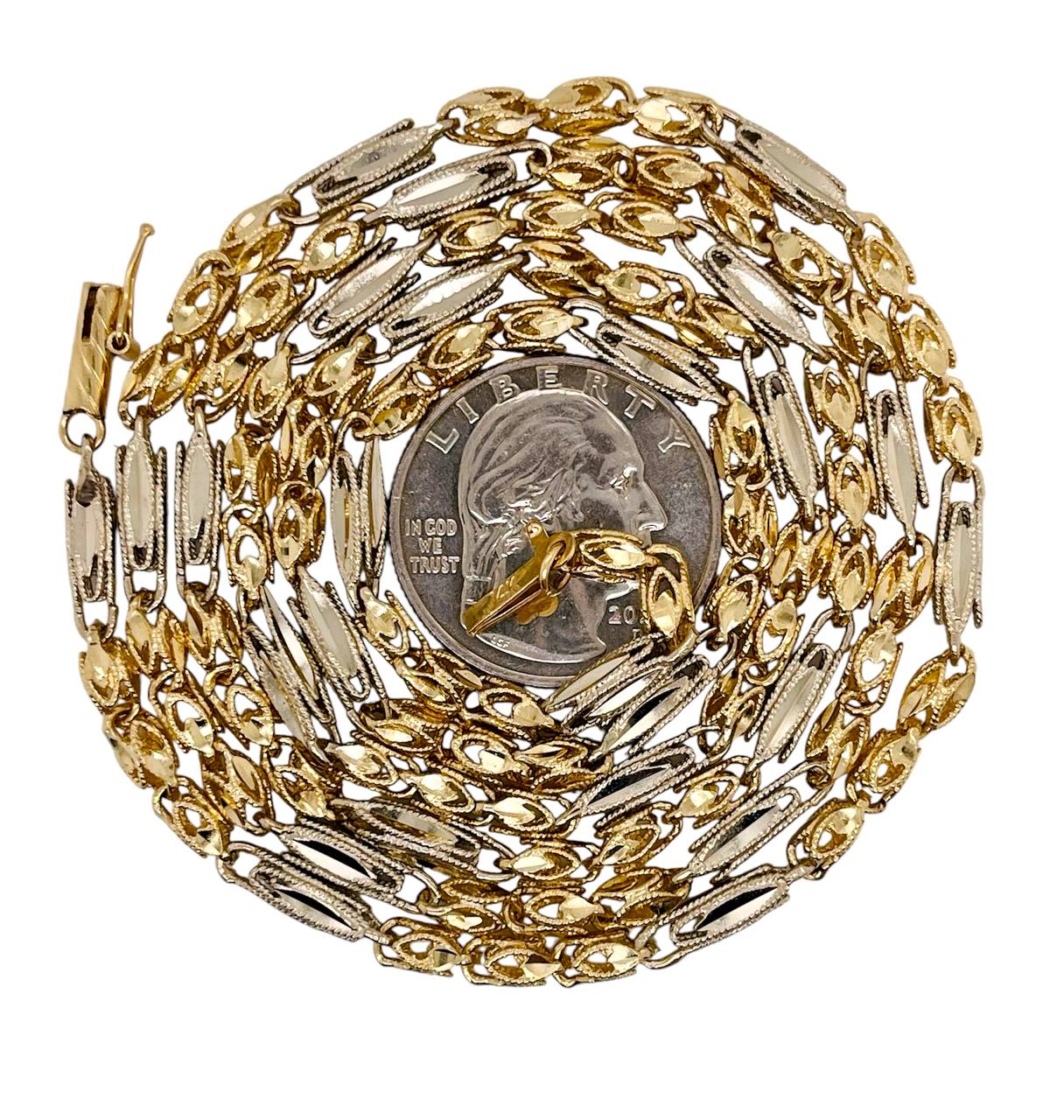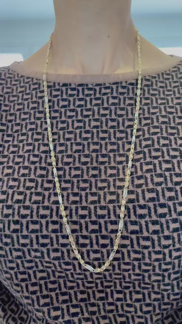 14K Solid Two Tone Gold Diamond Cut Turkish Chain Necklace 32 Inch, 26.7 Grams