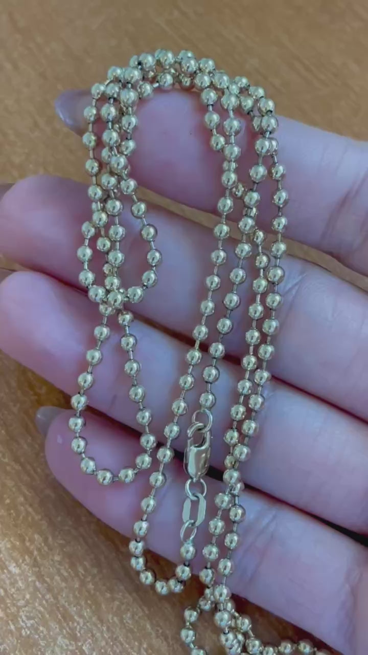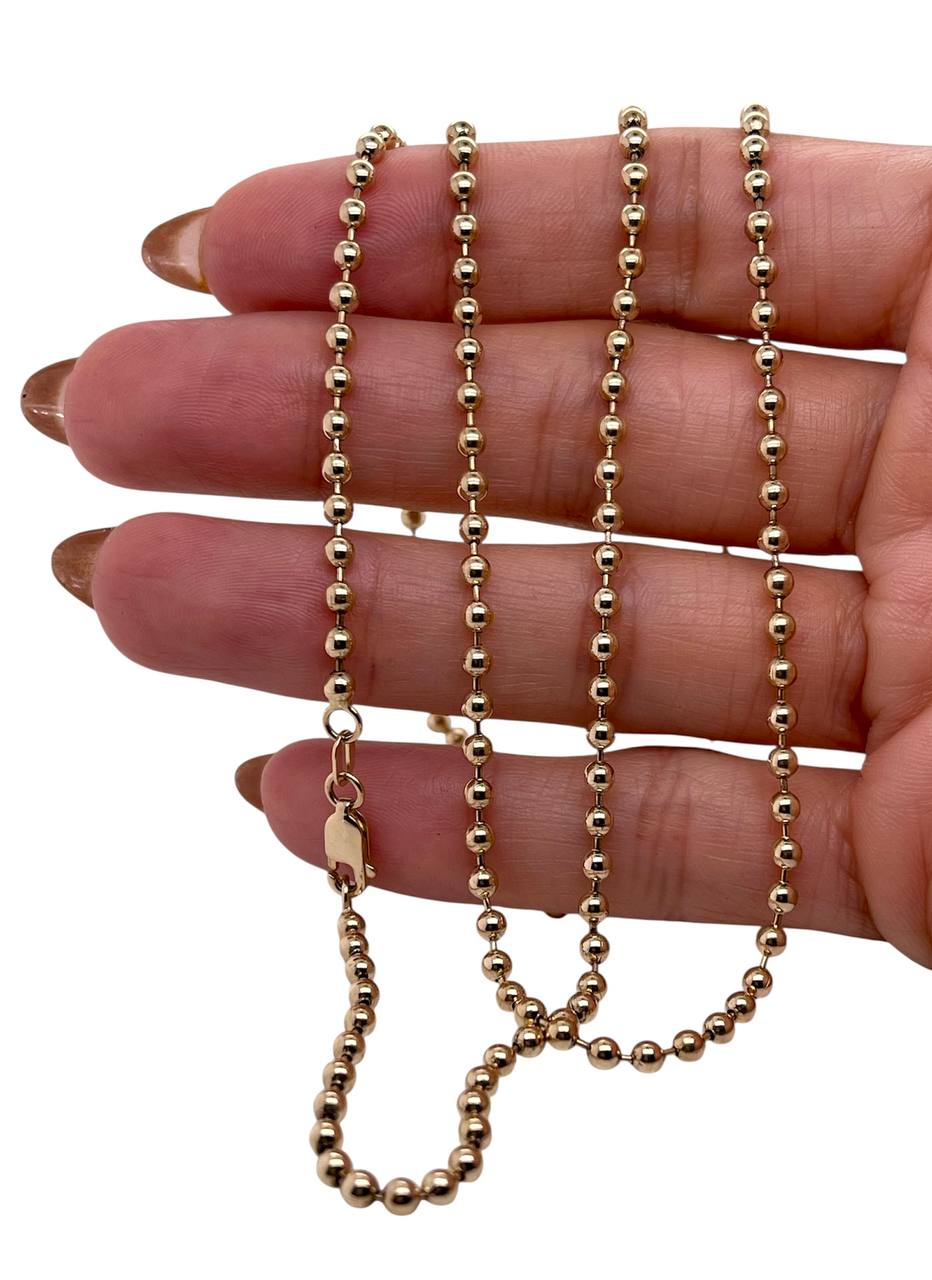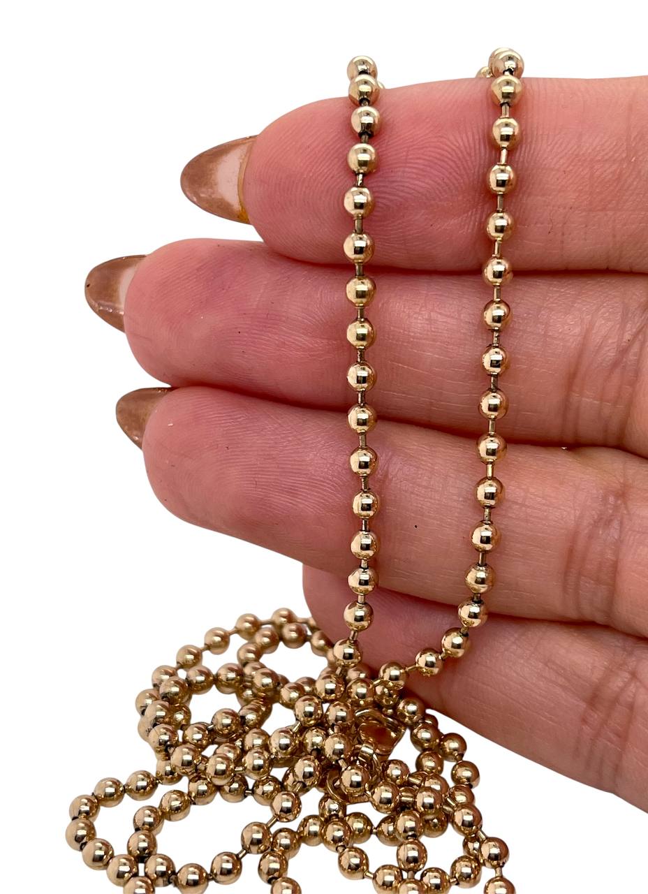 14k Solid Yellow Gold Military Bead Ball Chain Necklace 30 in 20.1 Grams 3 MM