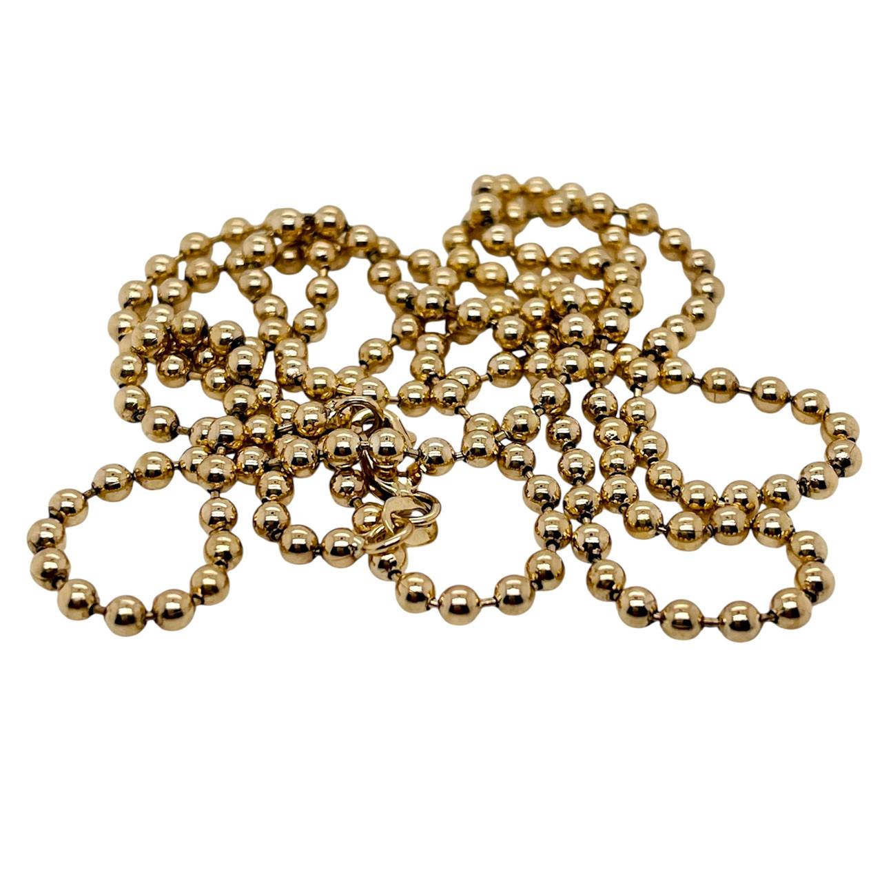 Very beautiful 14k solid yellow gold ball beads military chain necklace.