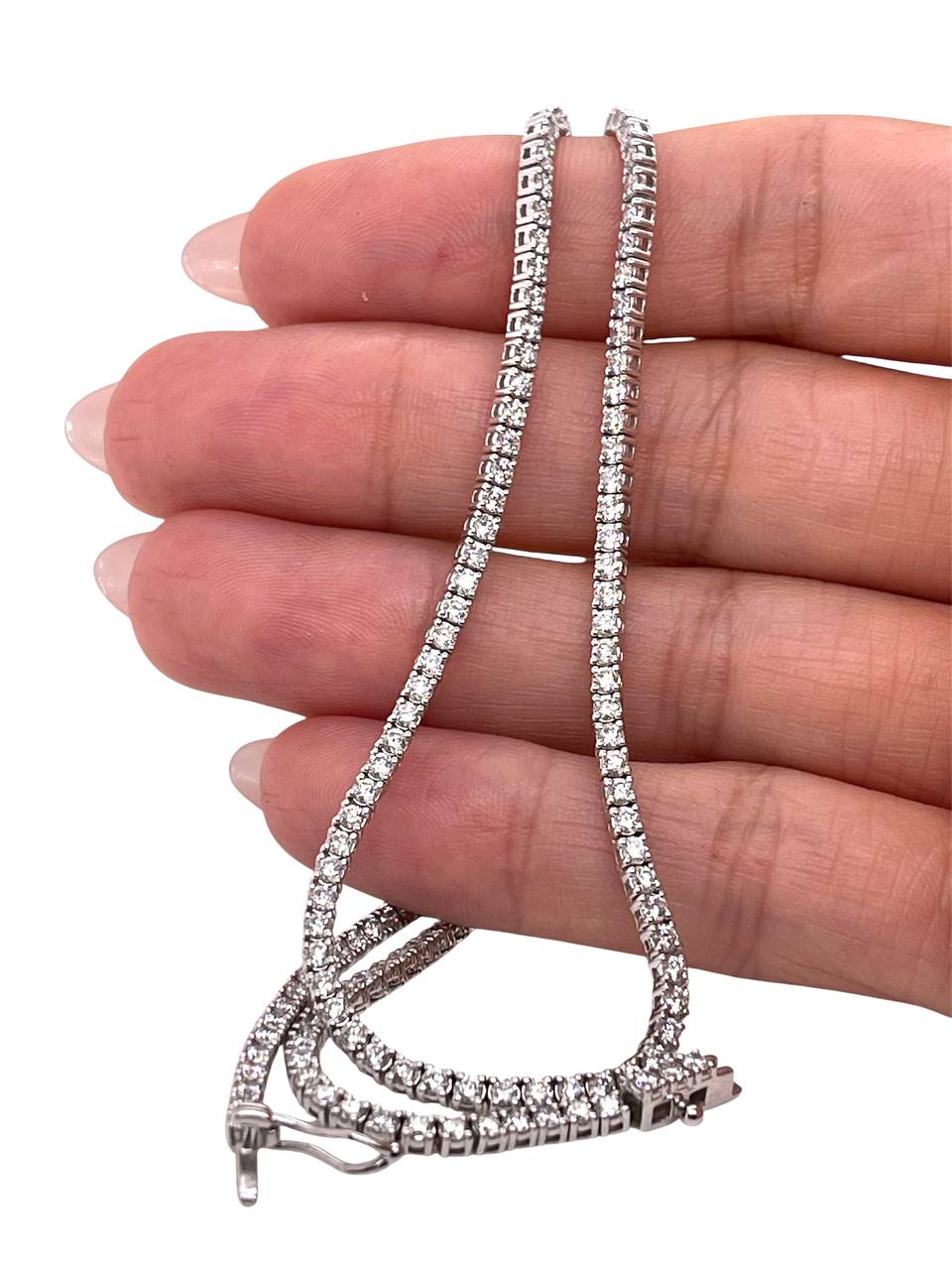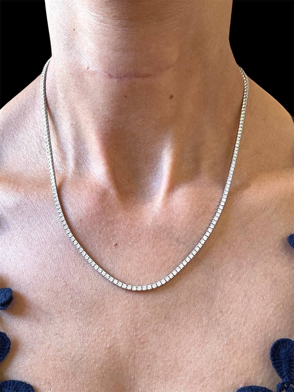 14k solid white gold lab-grown diamond tennis necklace.