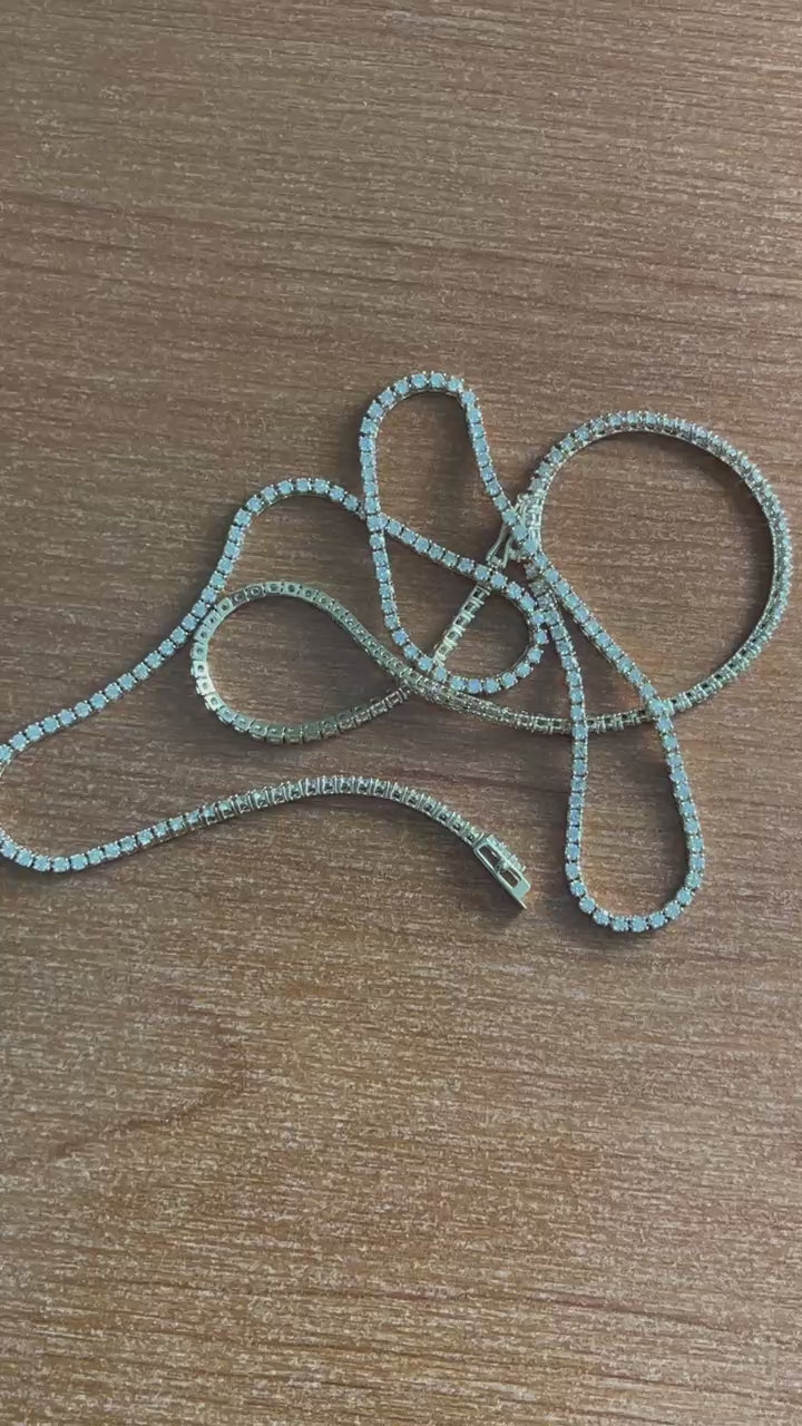 14k solid yellow gold natural diamond men/women tennis necklace.