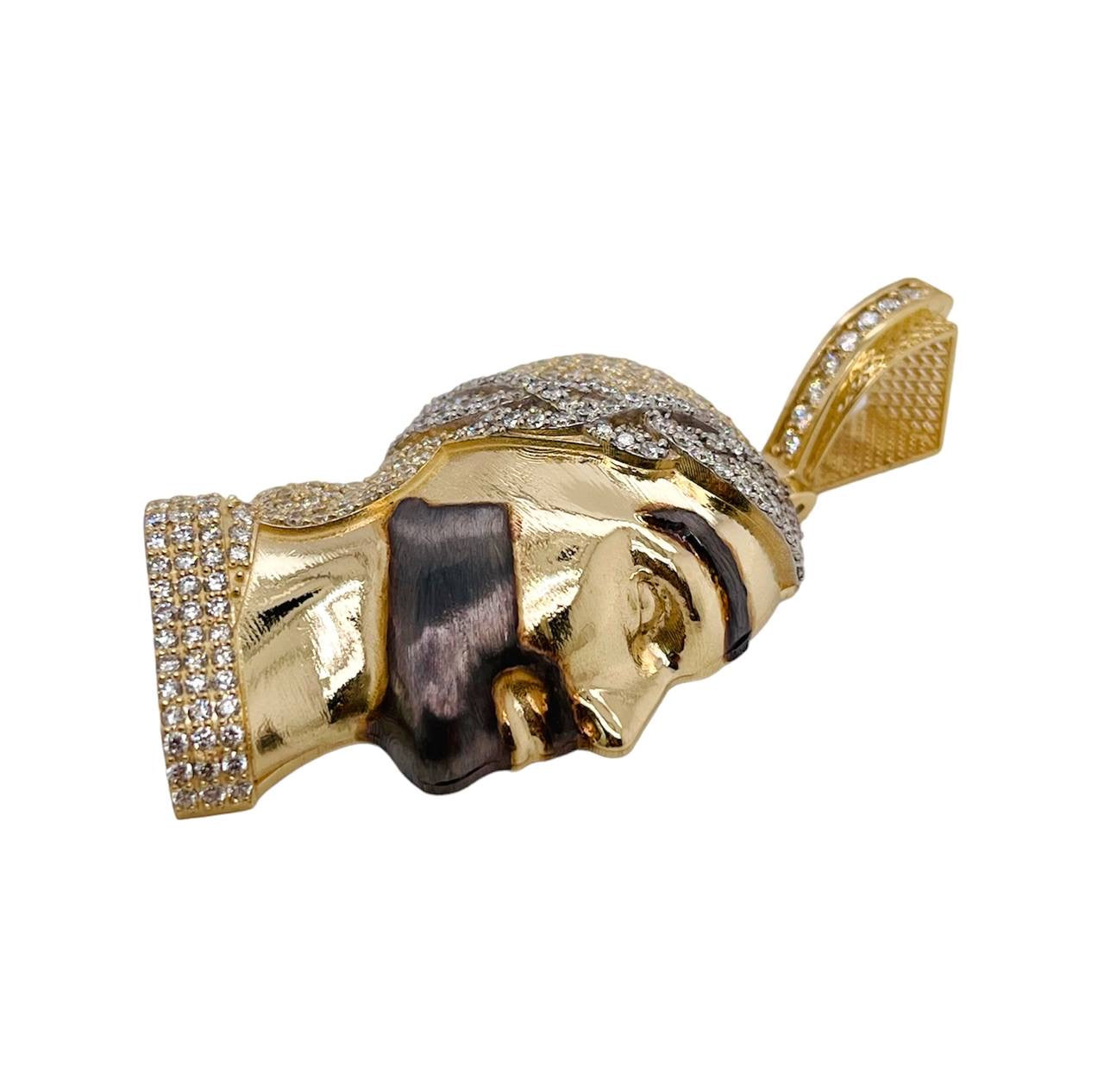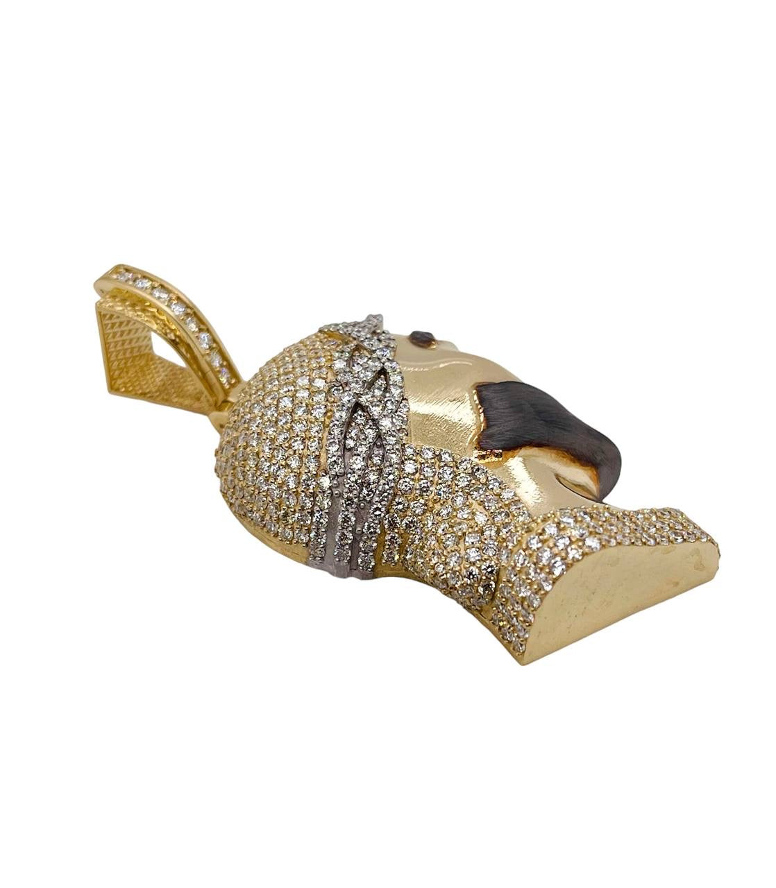 14K Yellow Gold 6.7 Ct Natural Diamond Jesus Face Pendant 2 in