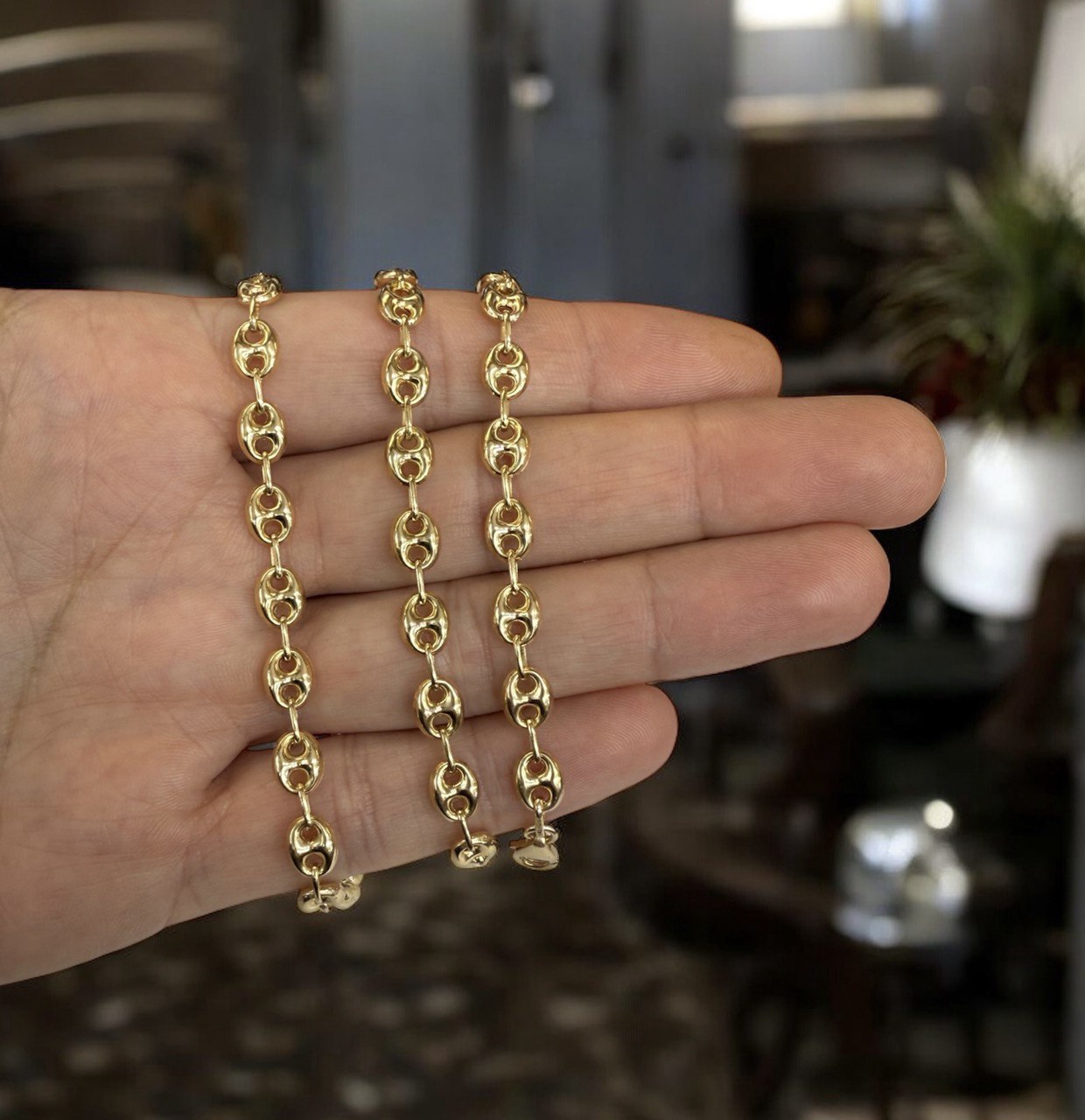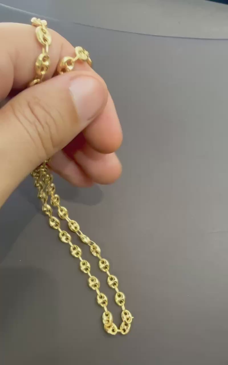 Very beautiful 18k real yellow gold hollow Gucci puff chain necklace.