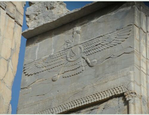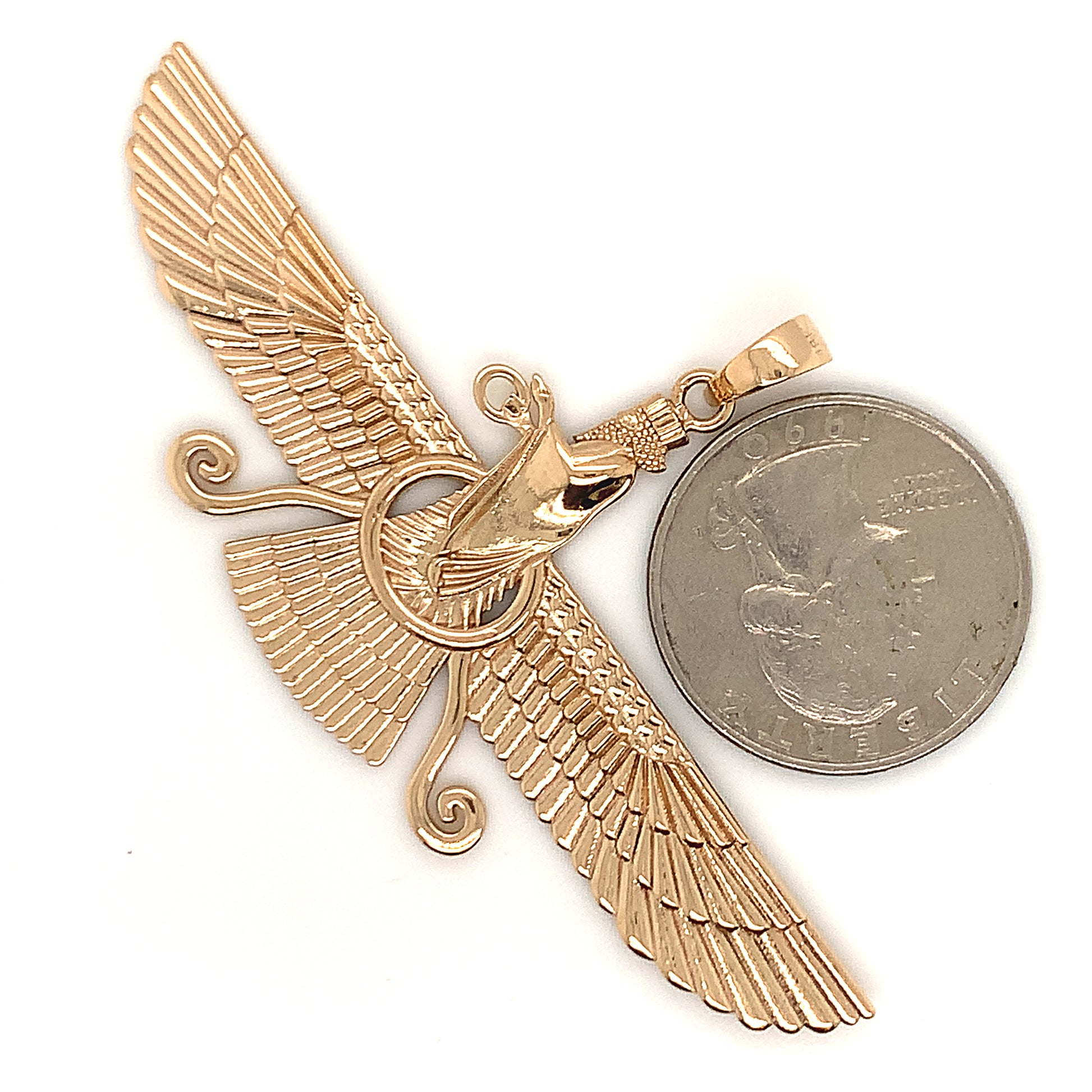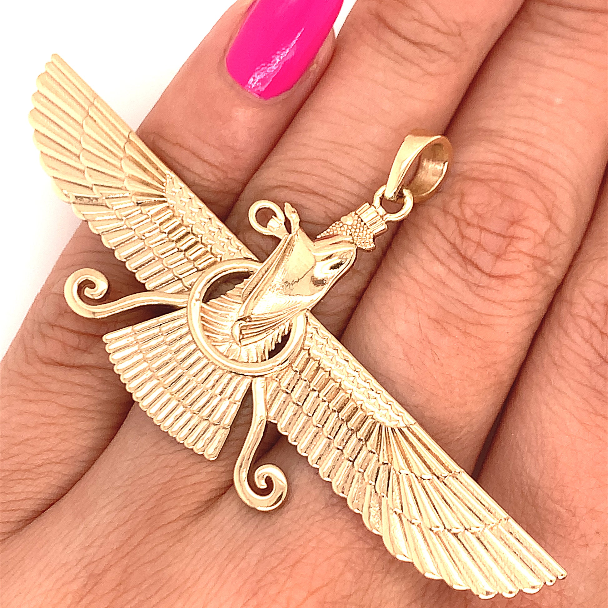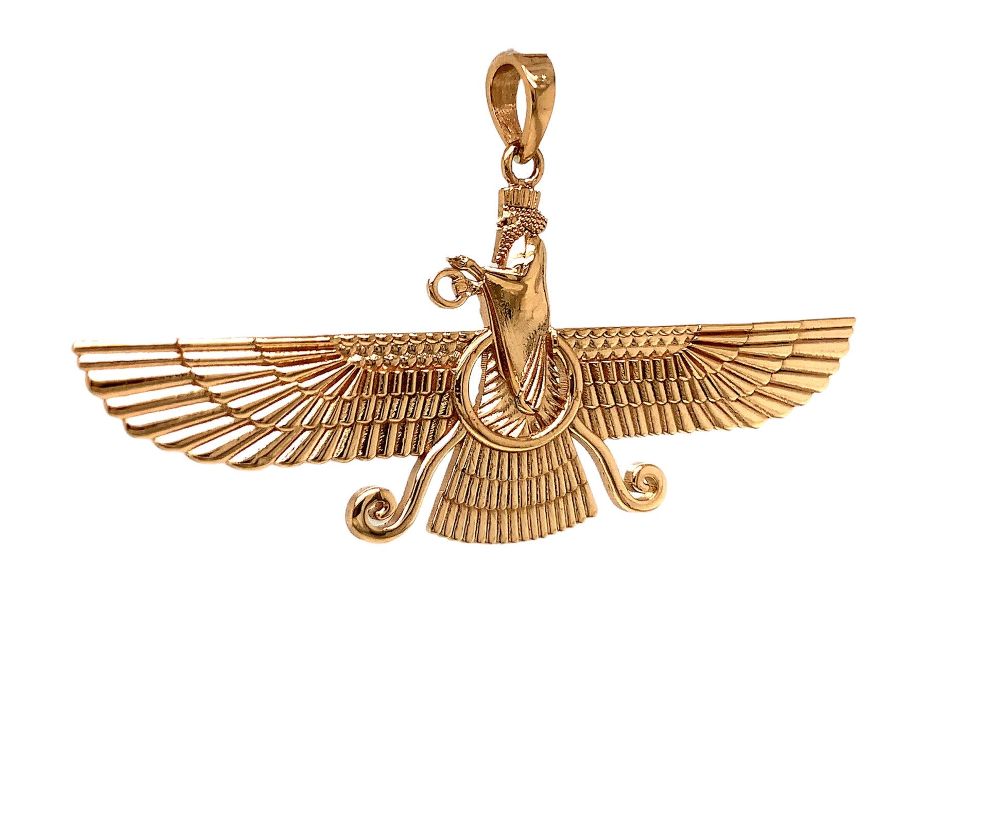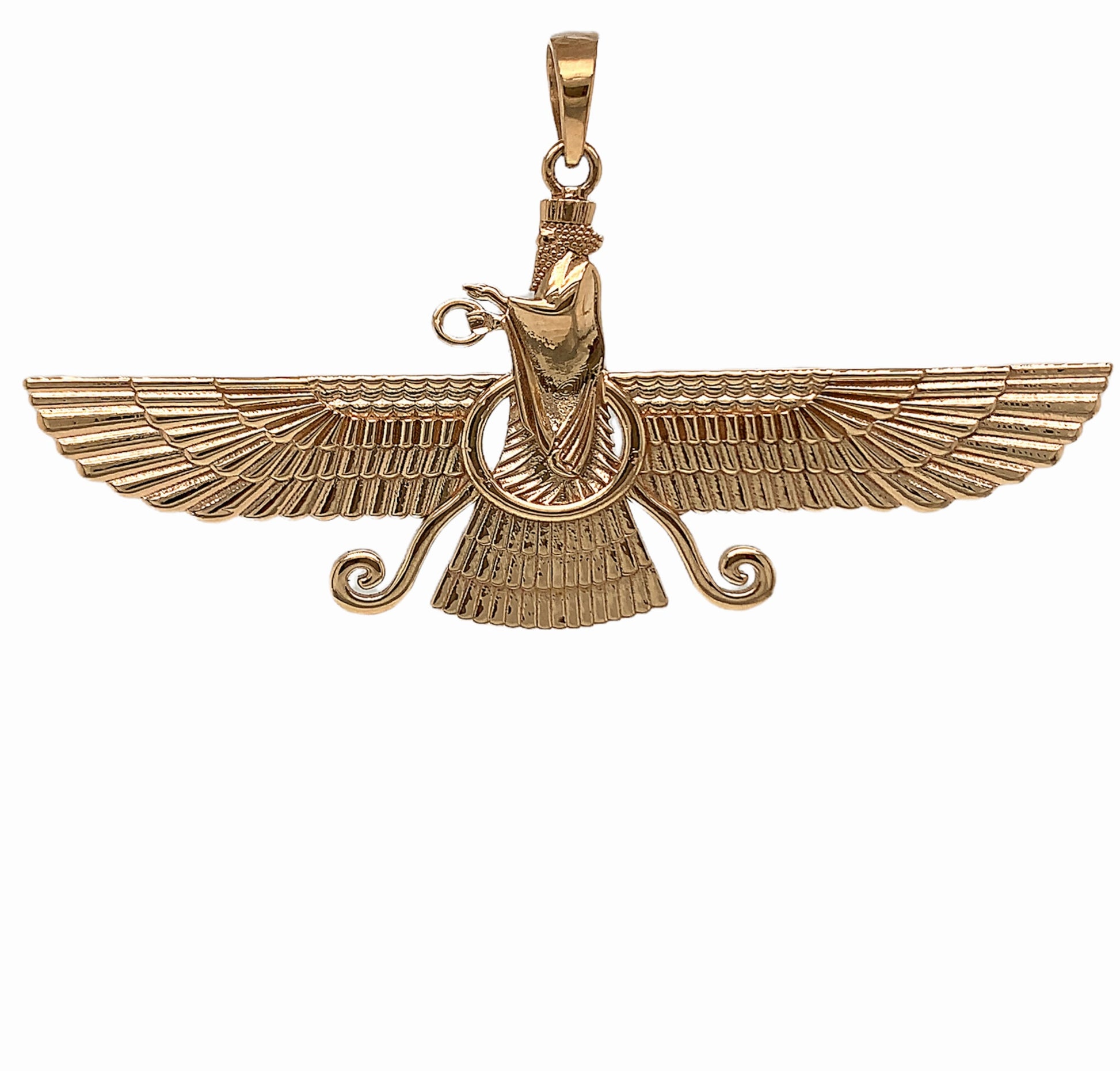 18k Solid yellow gold Farvahar Ahura Mazda Zoroastrian Achaemenid Pendant 2.83"