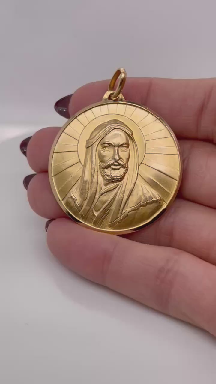 Vintage 18k solid yellow gold two-sided Muslim Shia Prophet Muhammad & Imam Ali Shamayel pendant
