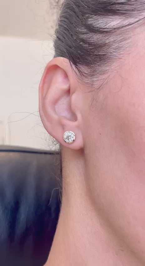 2.13 Ct Lab Grown Round Diamond Solitaire Bezel Set Stud Earrings
