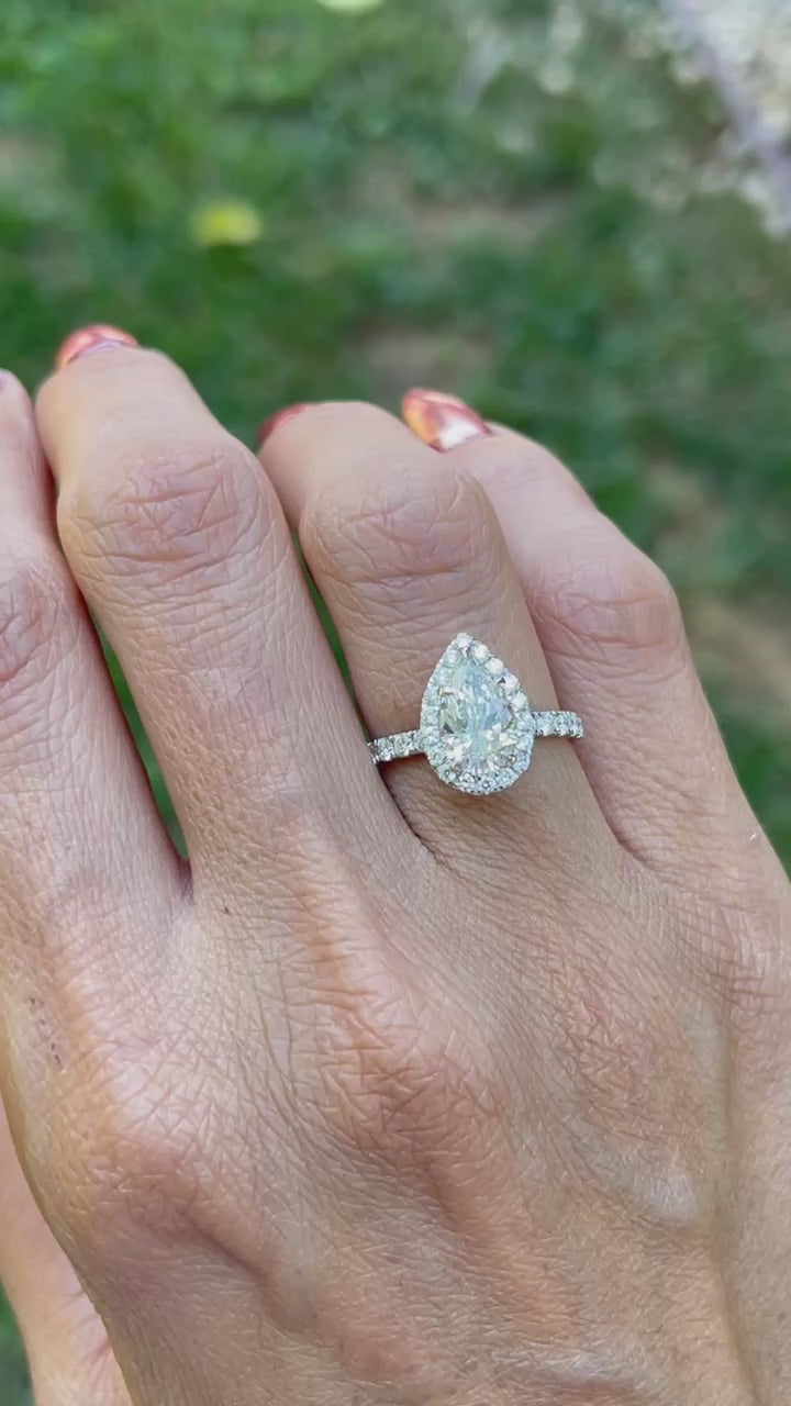 2.71 Ct D VS2 Lab Grown Pear Diamond Halo Engagement Ring 14k White Gold