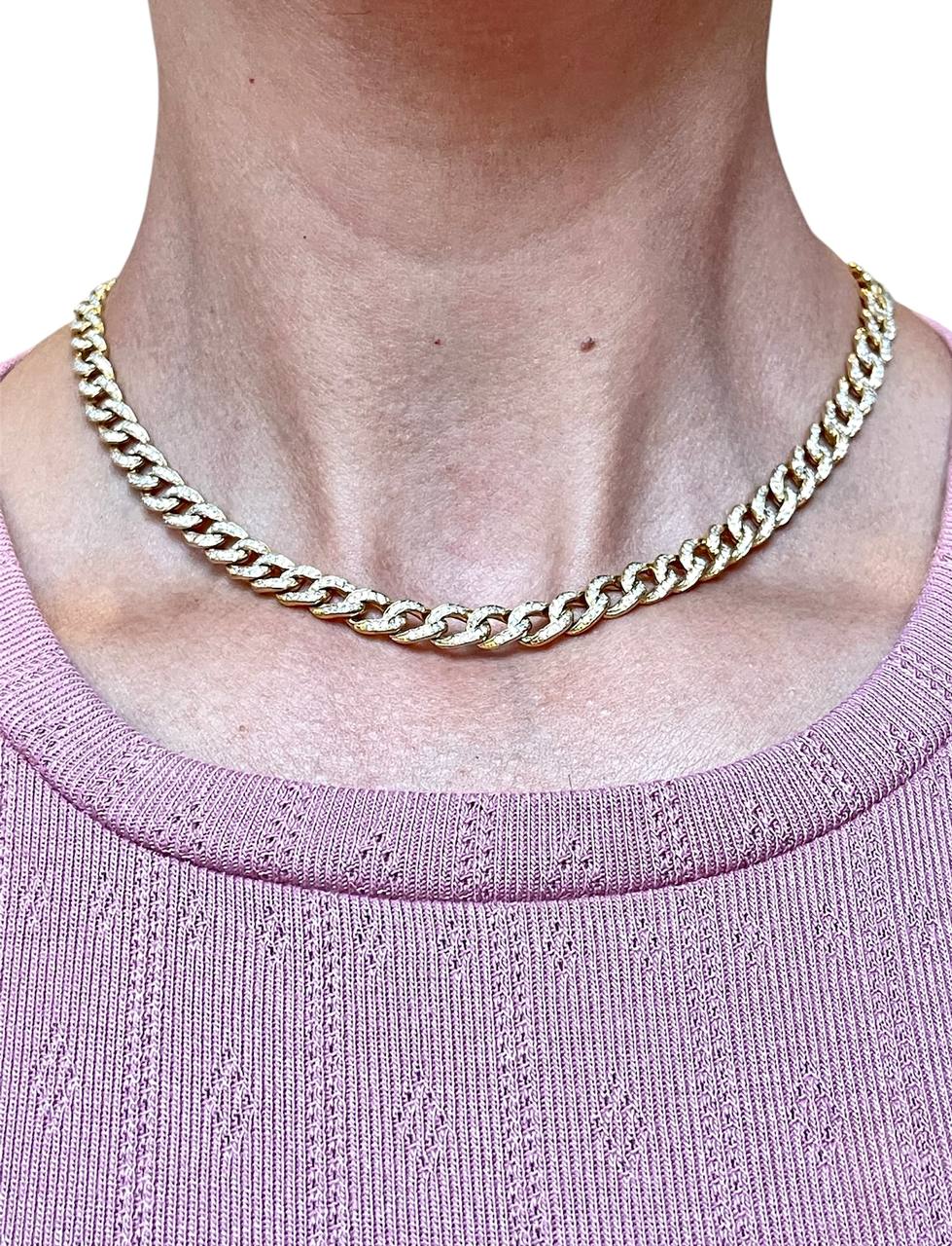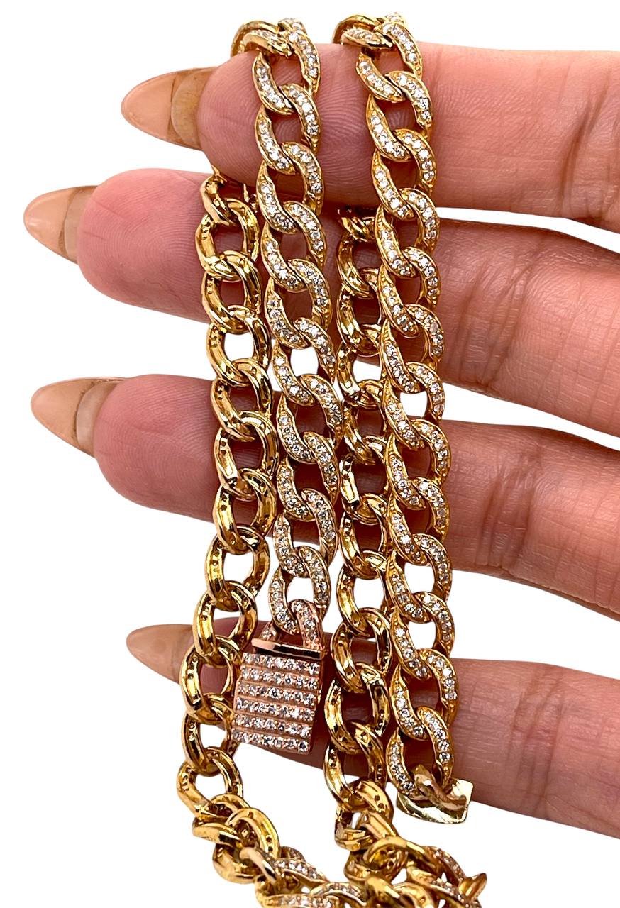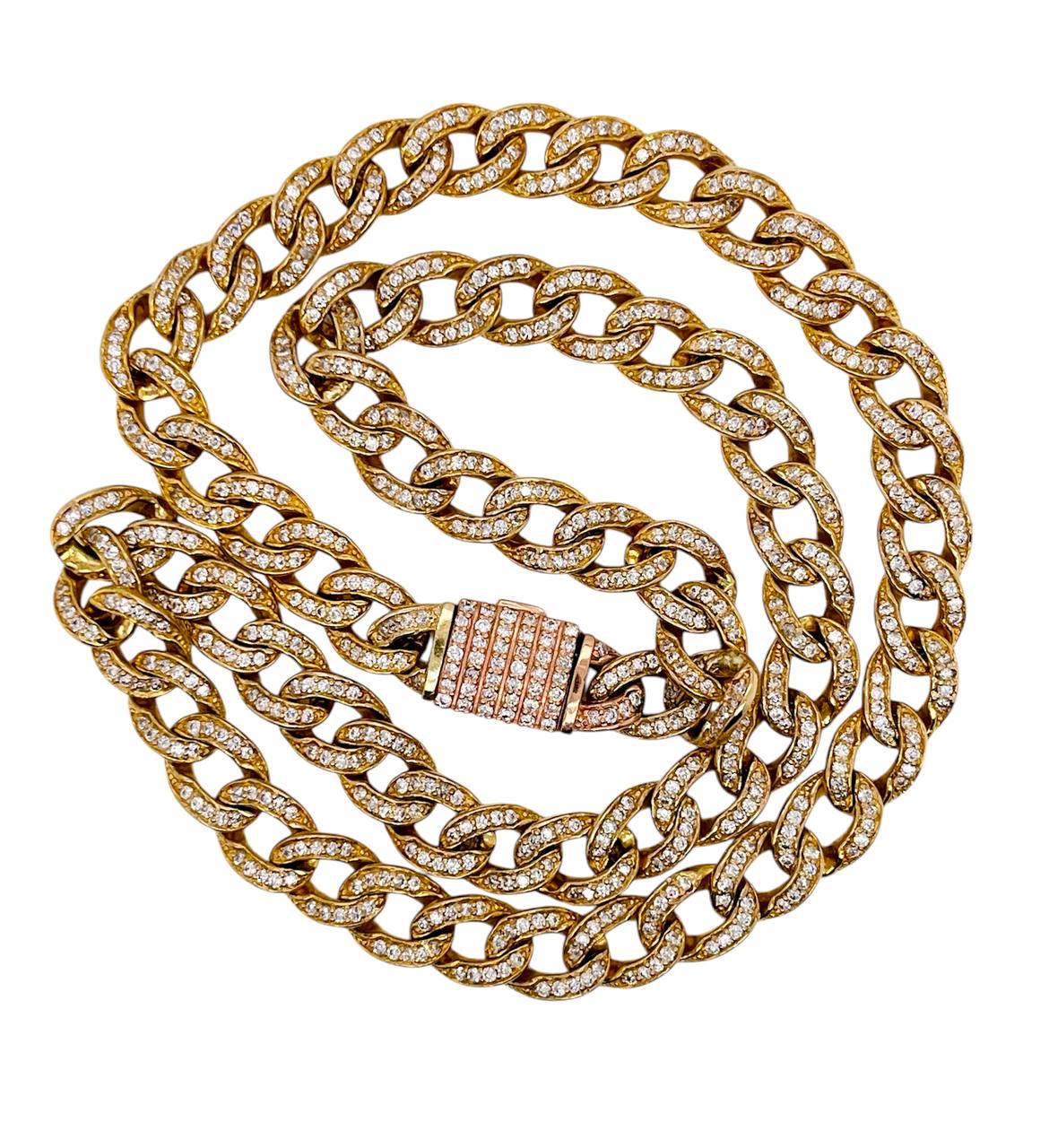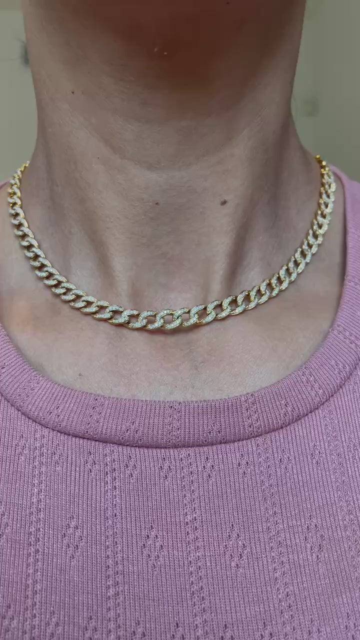 Very beautiful 10k yellow gold natural round diamond Miami Cuban link choker chain necklace.