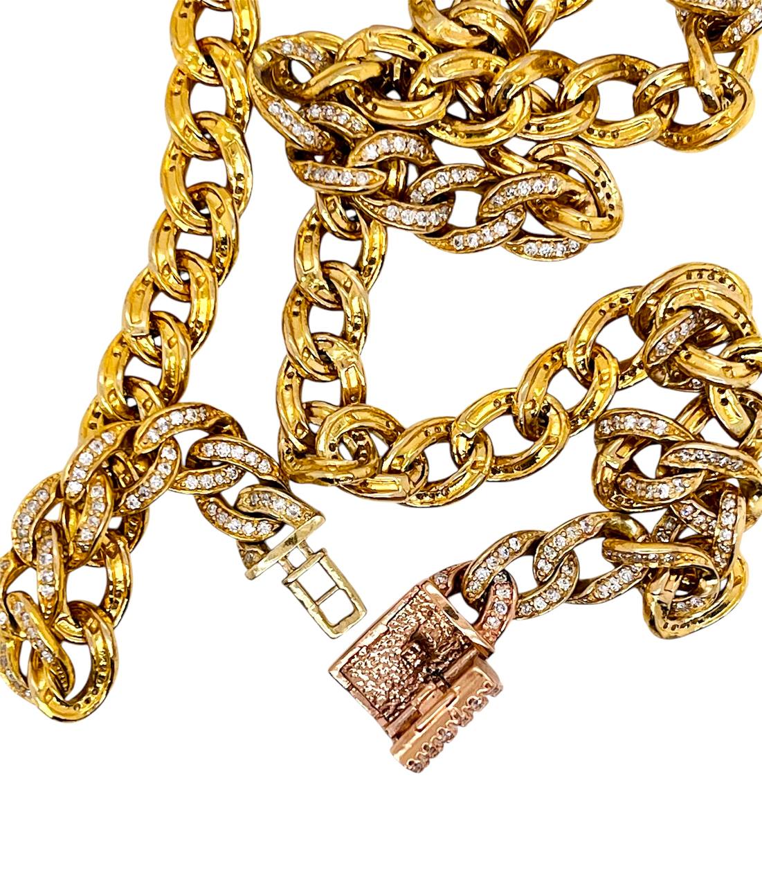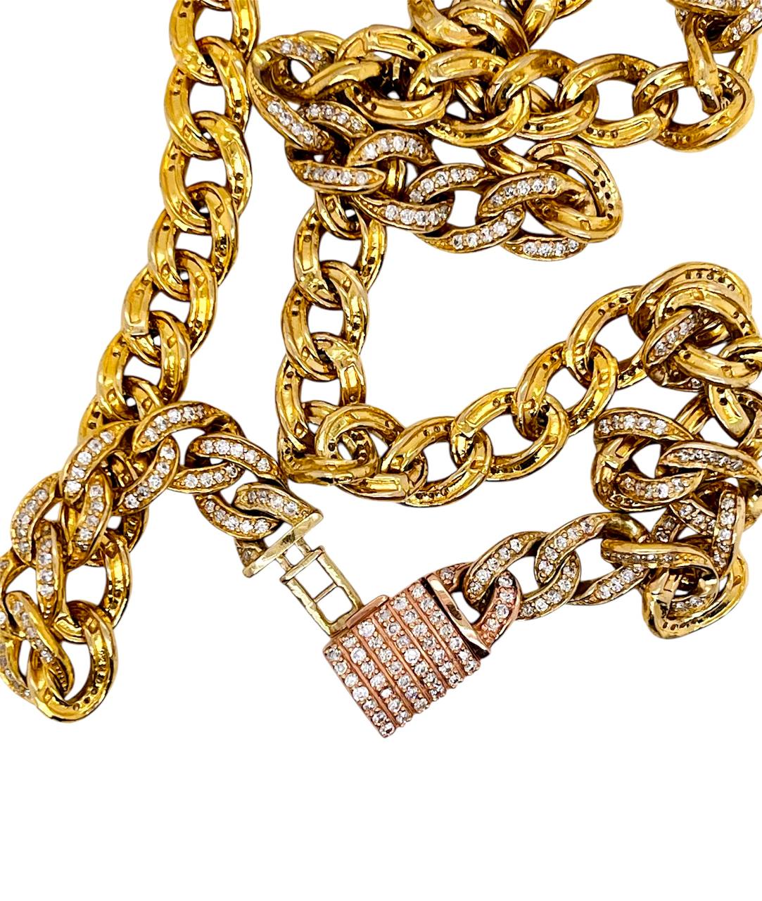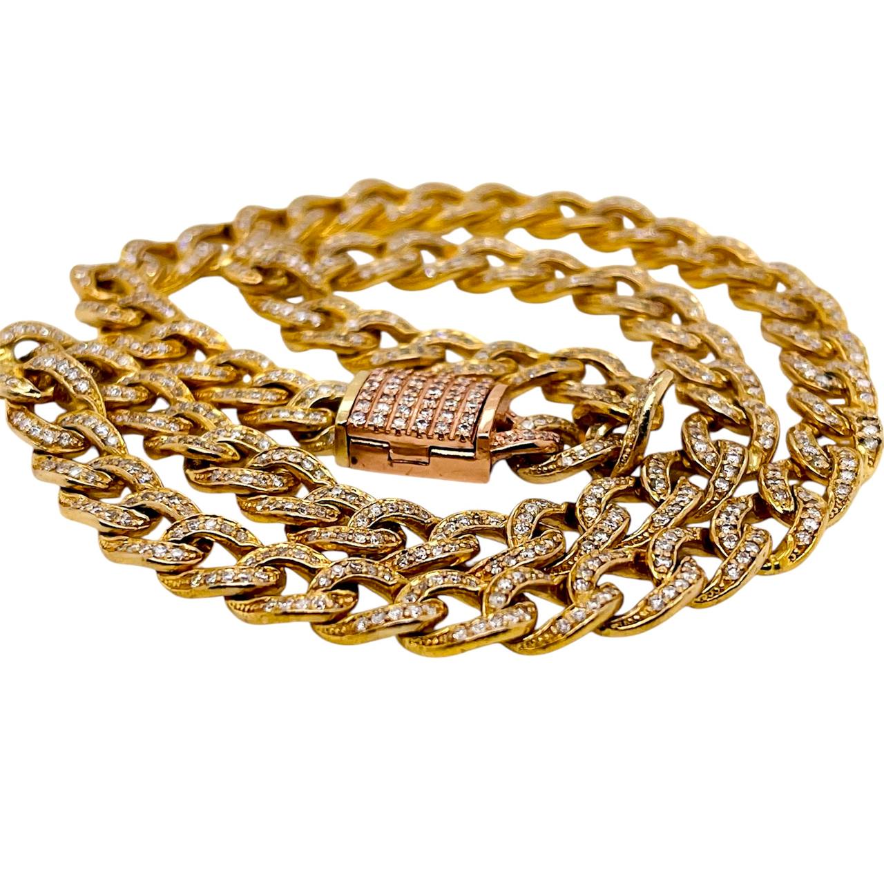 Very beautiful 10k yellow gold natural round diamond Miami Cuban link choker chain necklace.