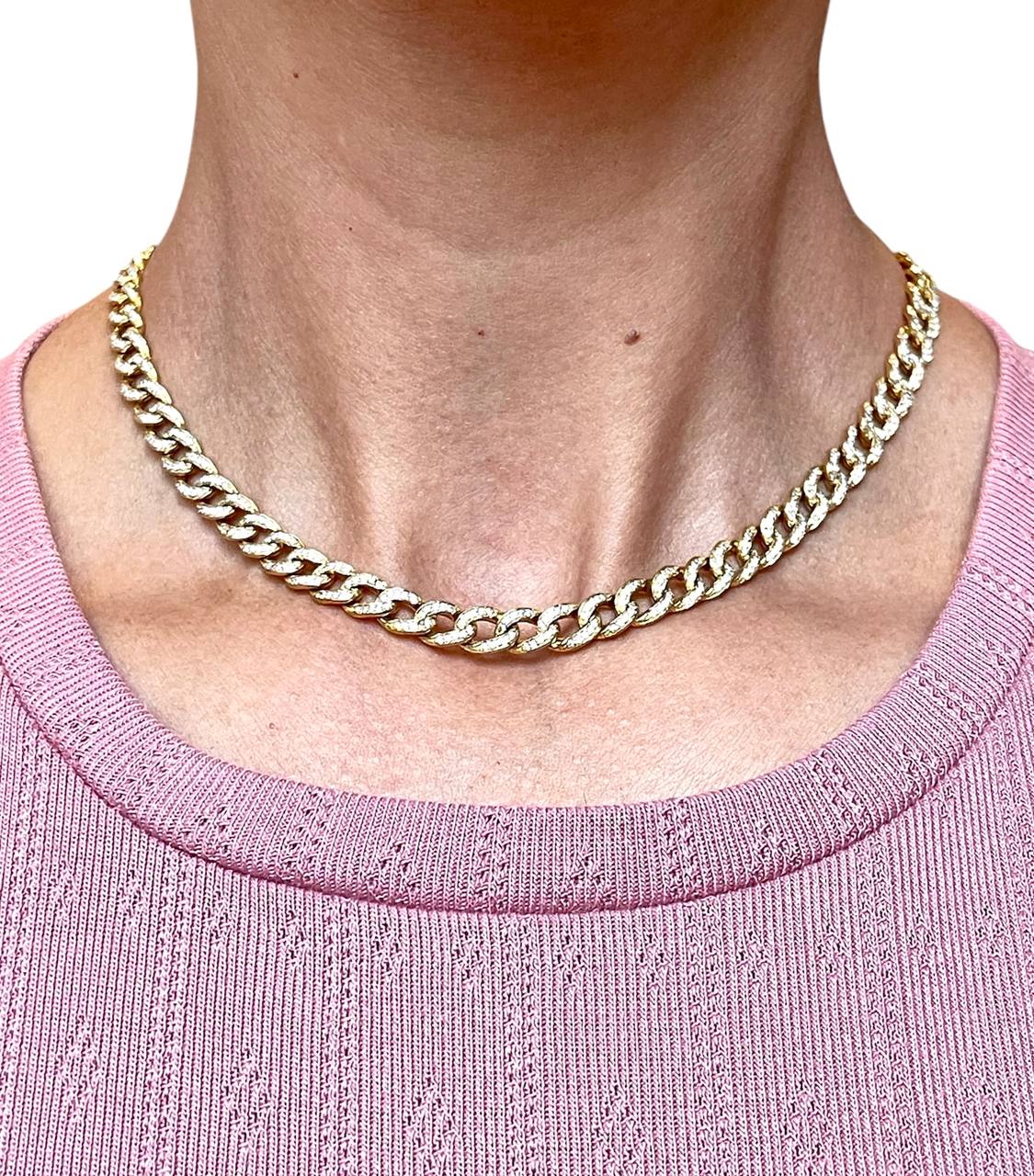 37. 3 Gr 10k Yellow Gold Natural Diamond Miami Cuban Choker Chain Necklace 17"