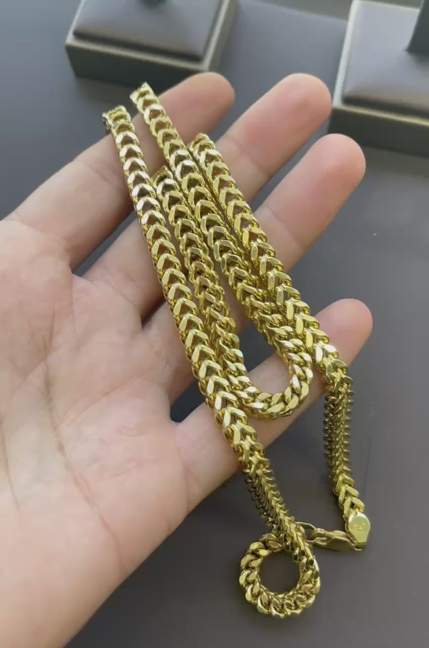 Very beautiful 14k real yellow gold square hollow diamond cut Franco chain necklace.