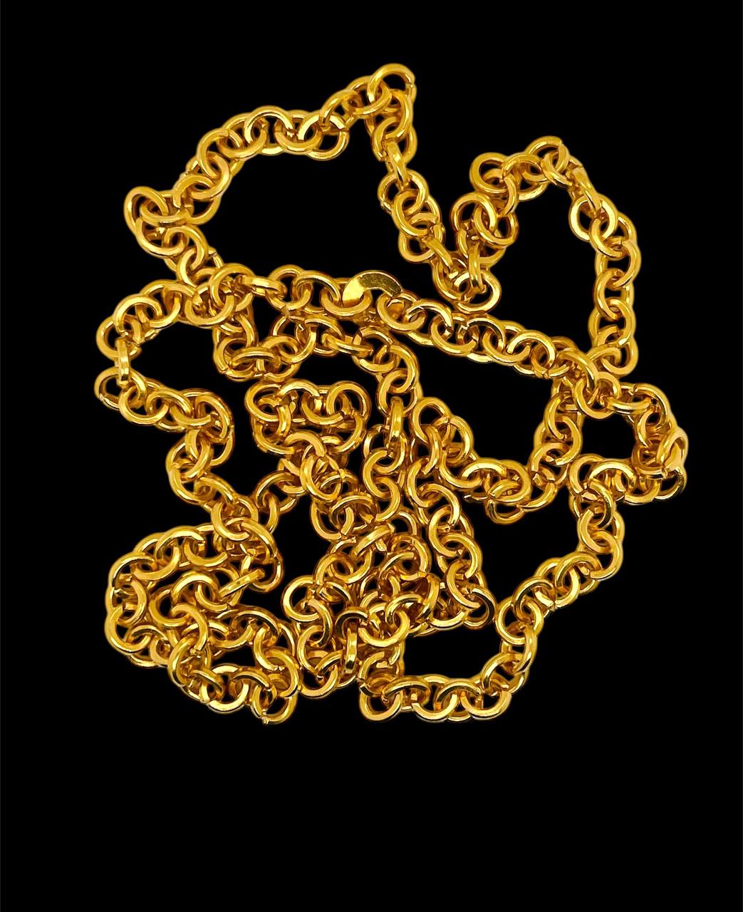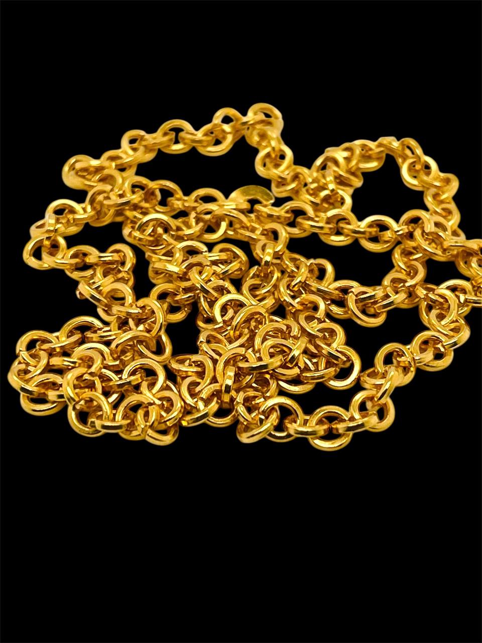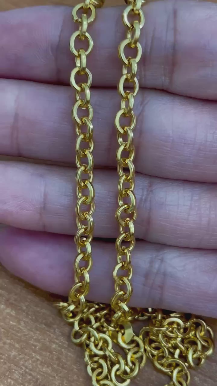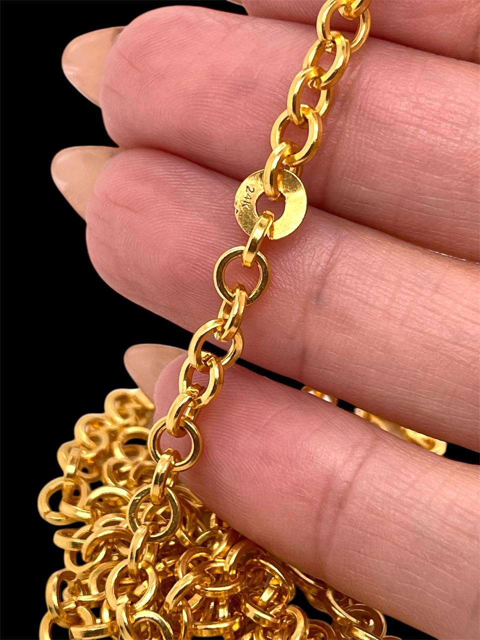 Beautiful and unique design 24k Solid yellow gold round link men's chain necklace!
