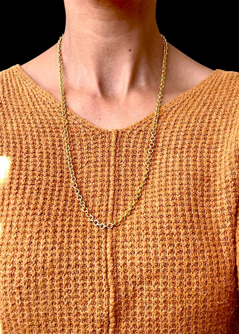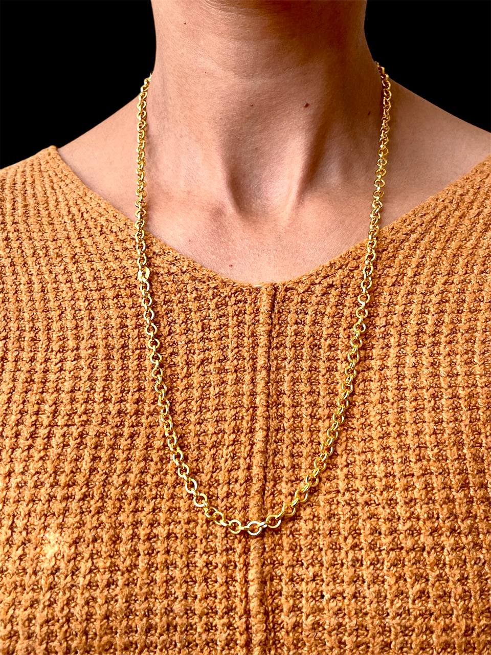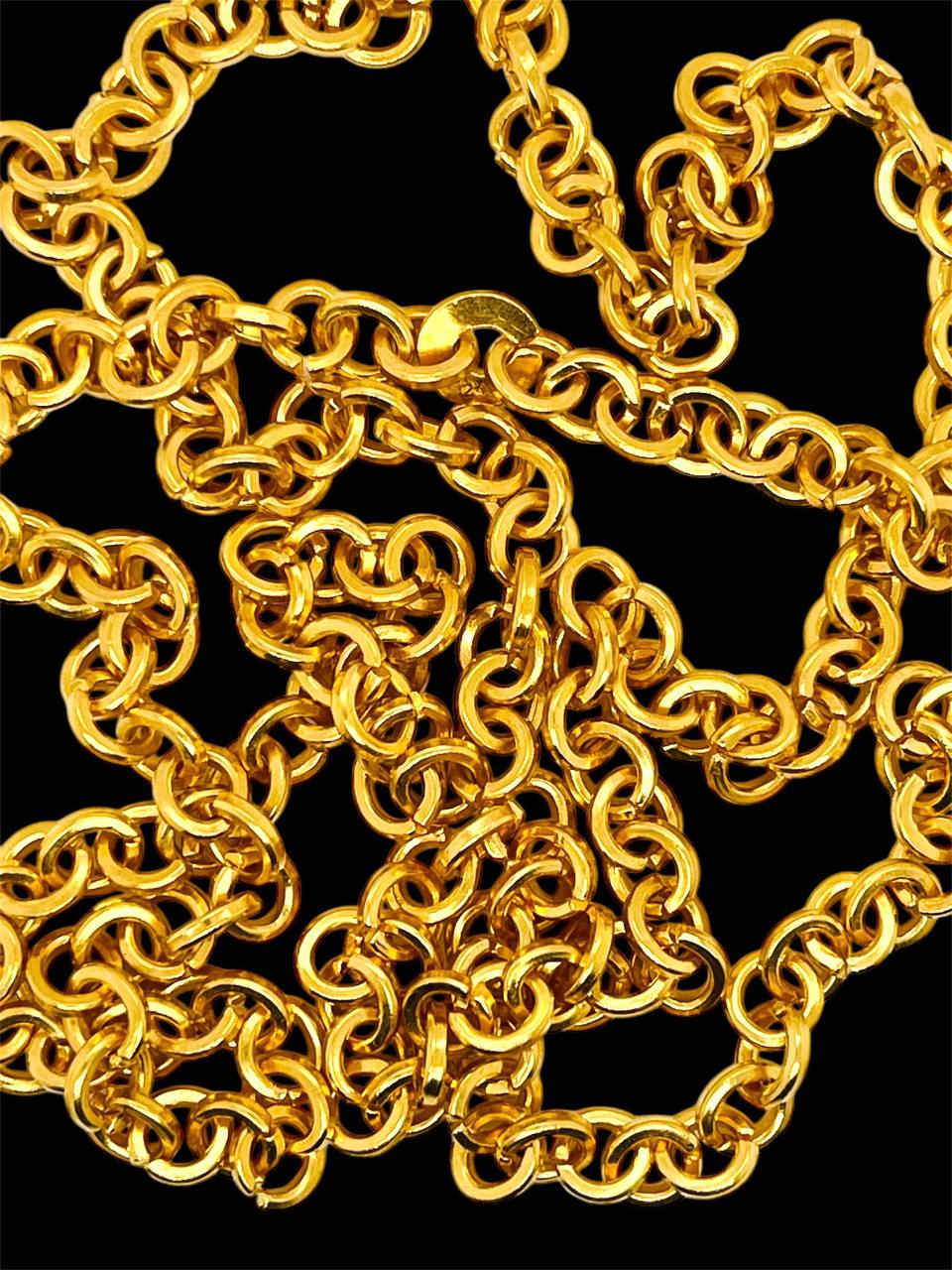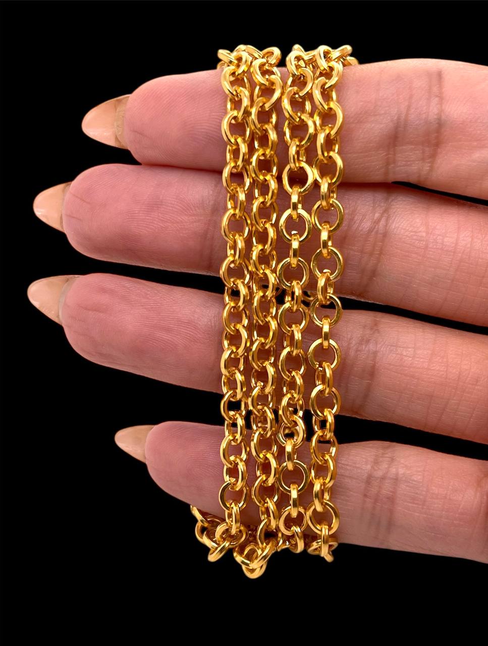 Beautiful and unique design 24k Solid yellow gold round link men's chain necklace!