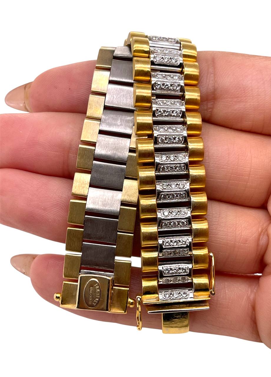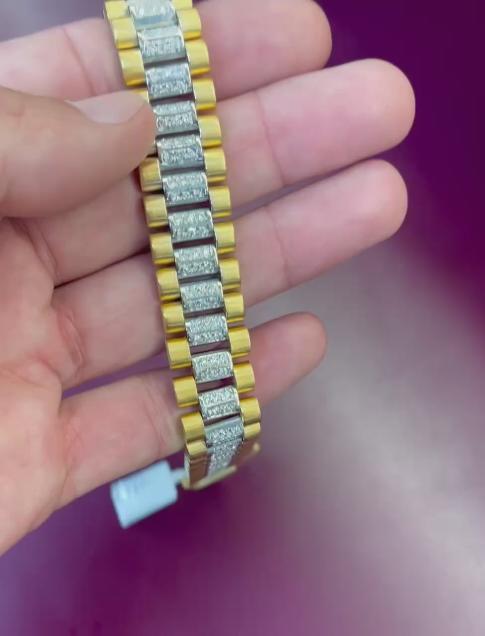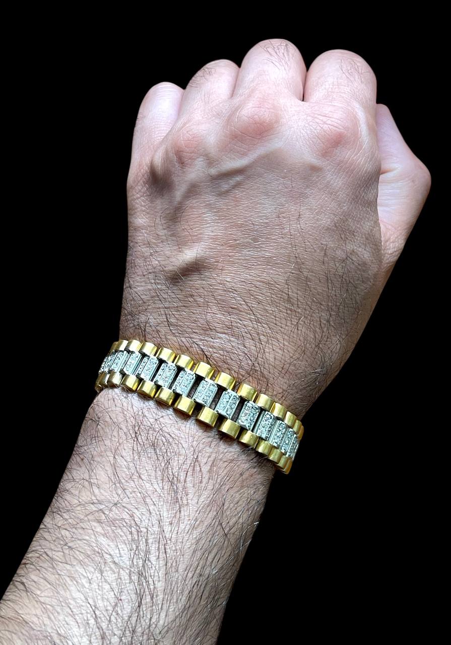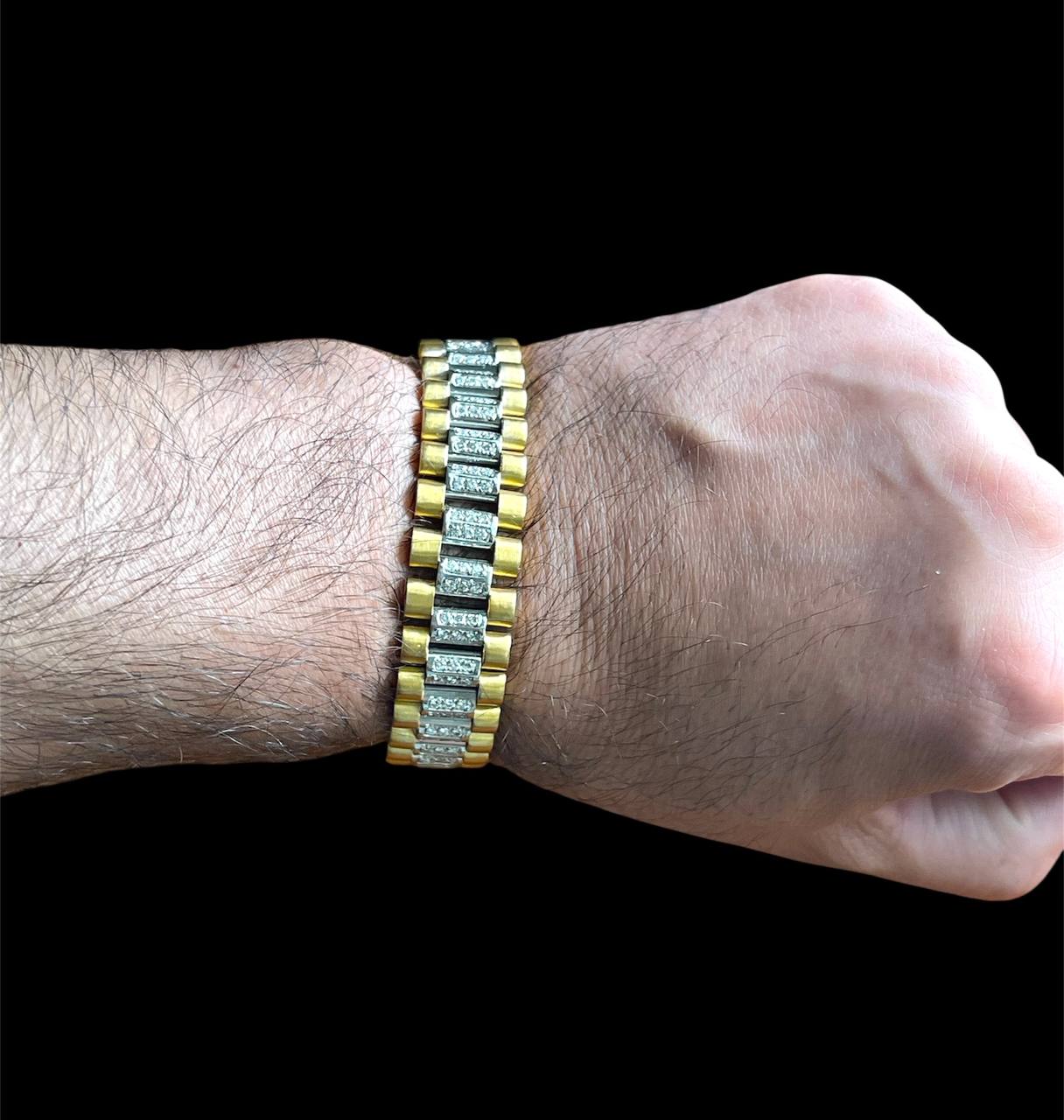 Beautiful 18k solid yellow and white gold natural diamond men's Jubilee link bracelet.