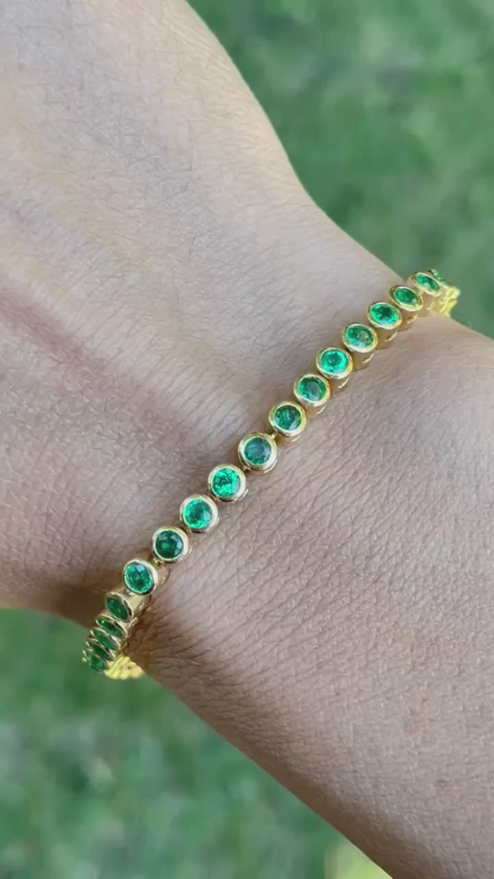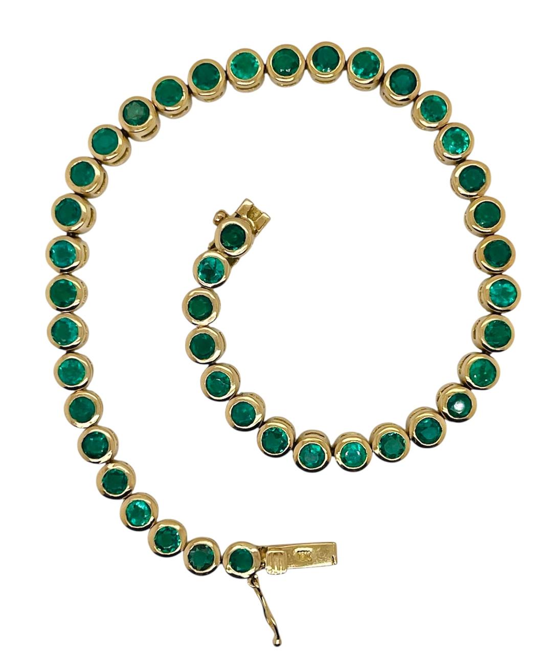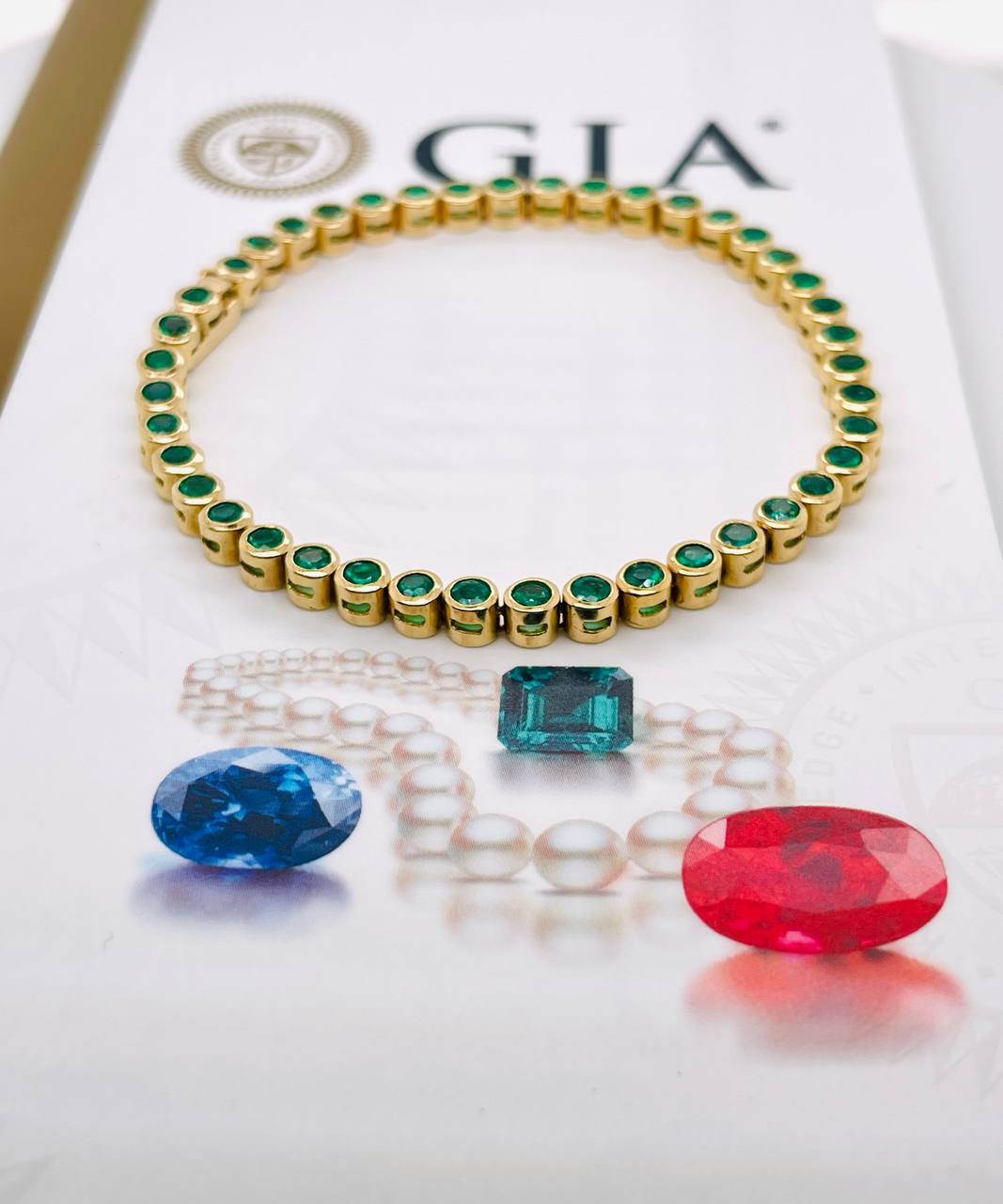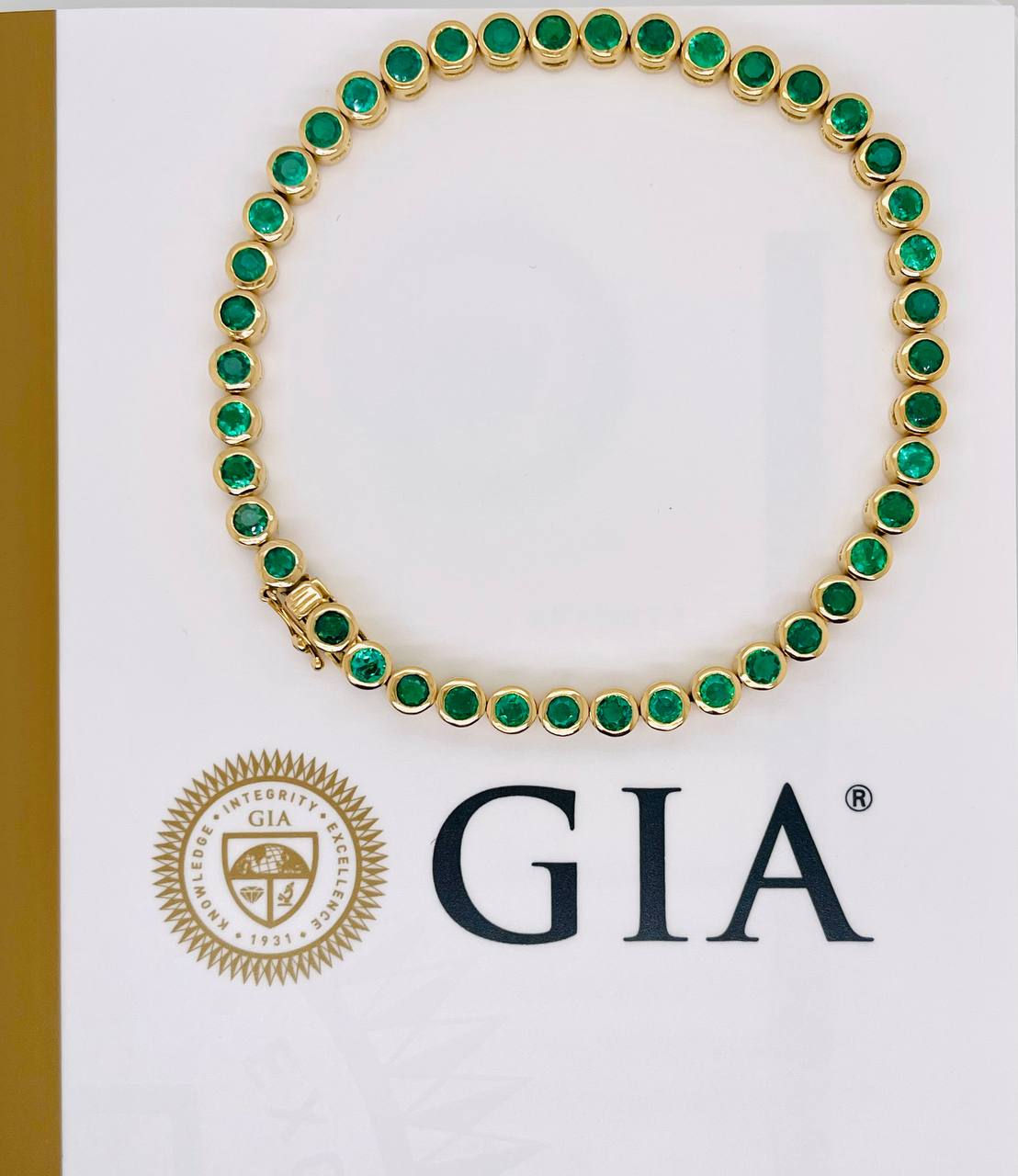 GIA Certified Natural Colombian Emerald 18k Gold Bezel Set Tennis Bracelet