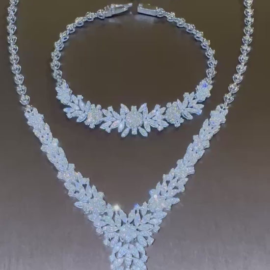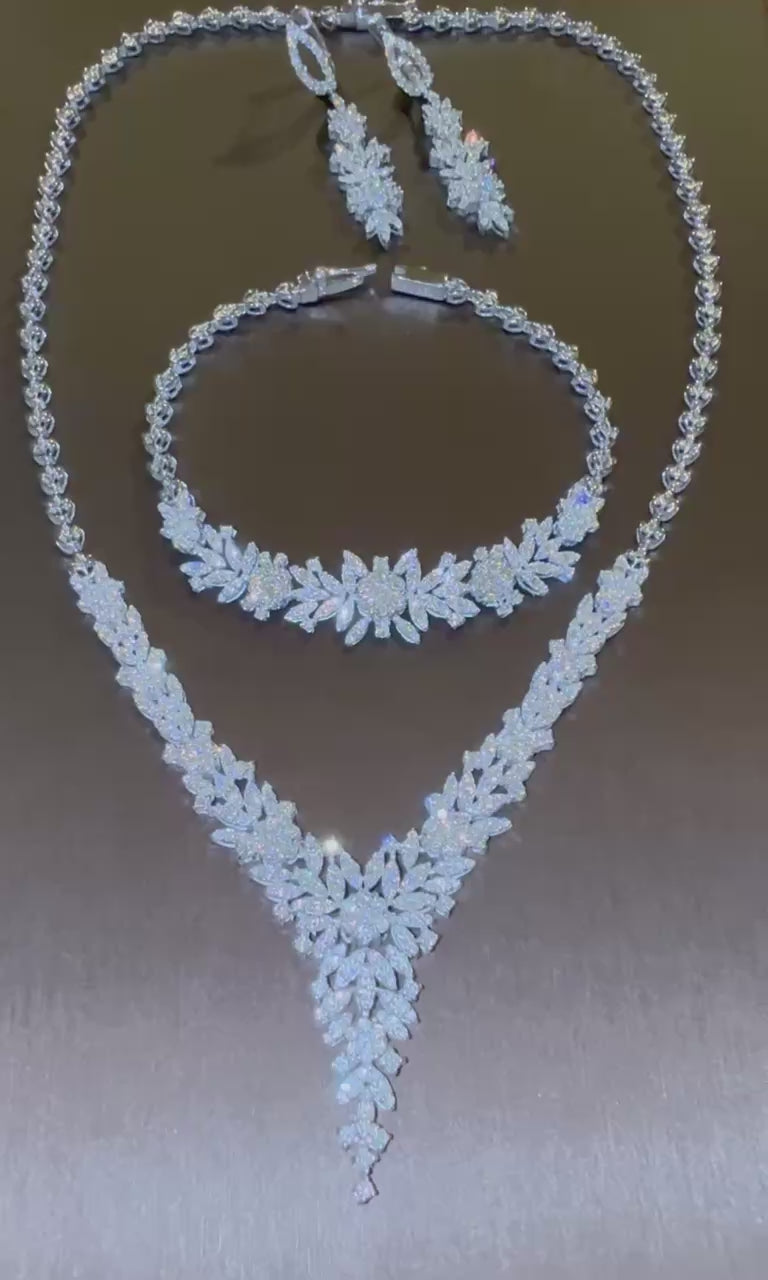 Luxury 18K White Gold Natural Diamond Bridal Jewelry Set Statement Piece