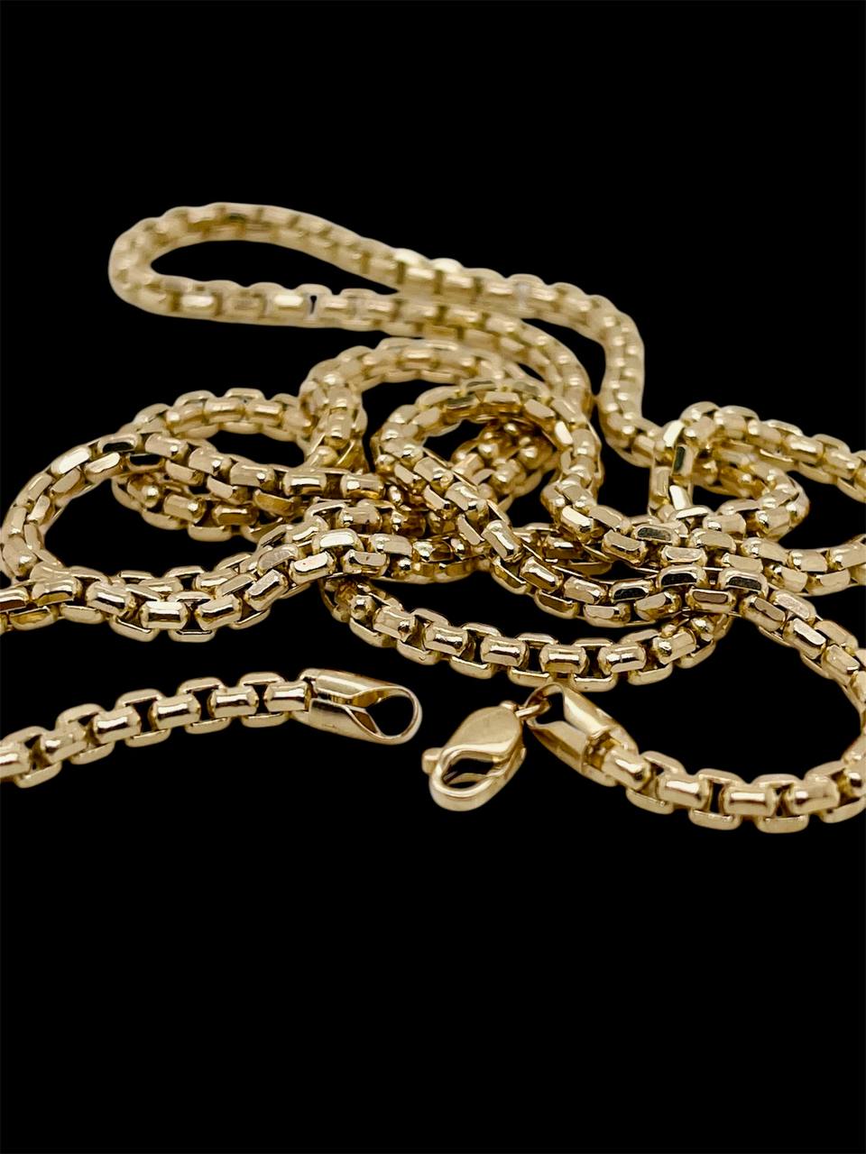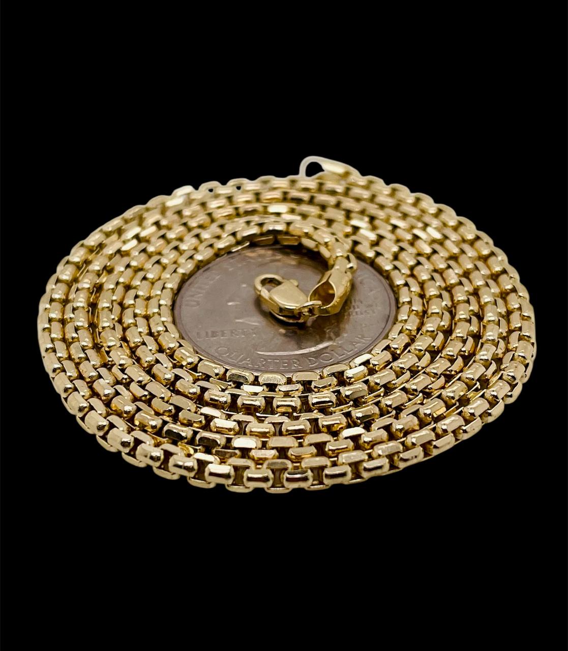 Very beautiful 14k yellow gold hollow round box chain necklace.