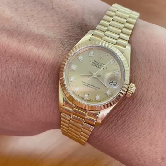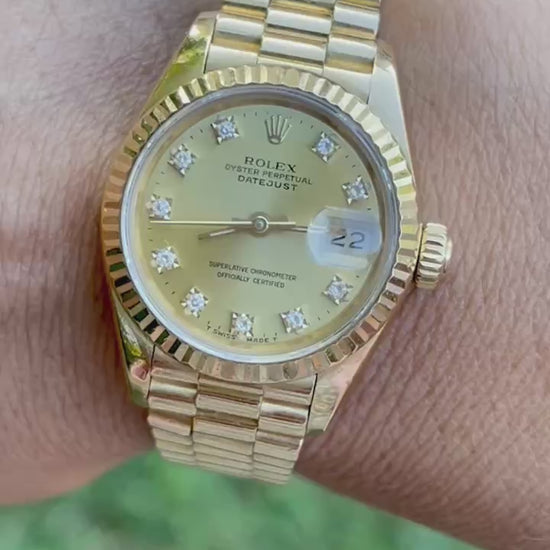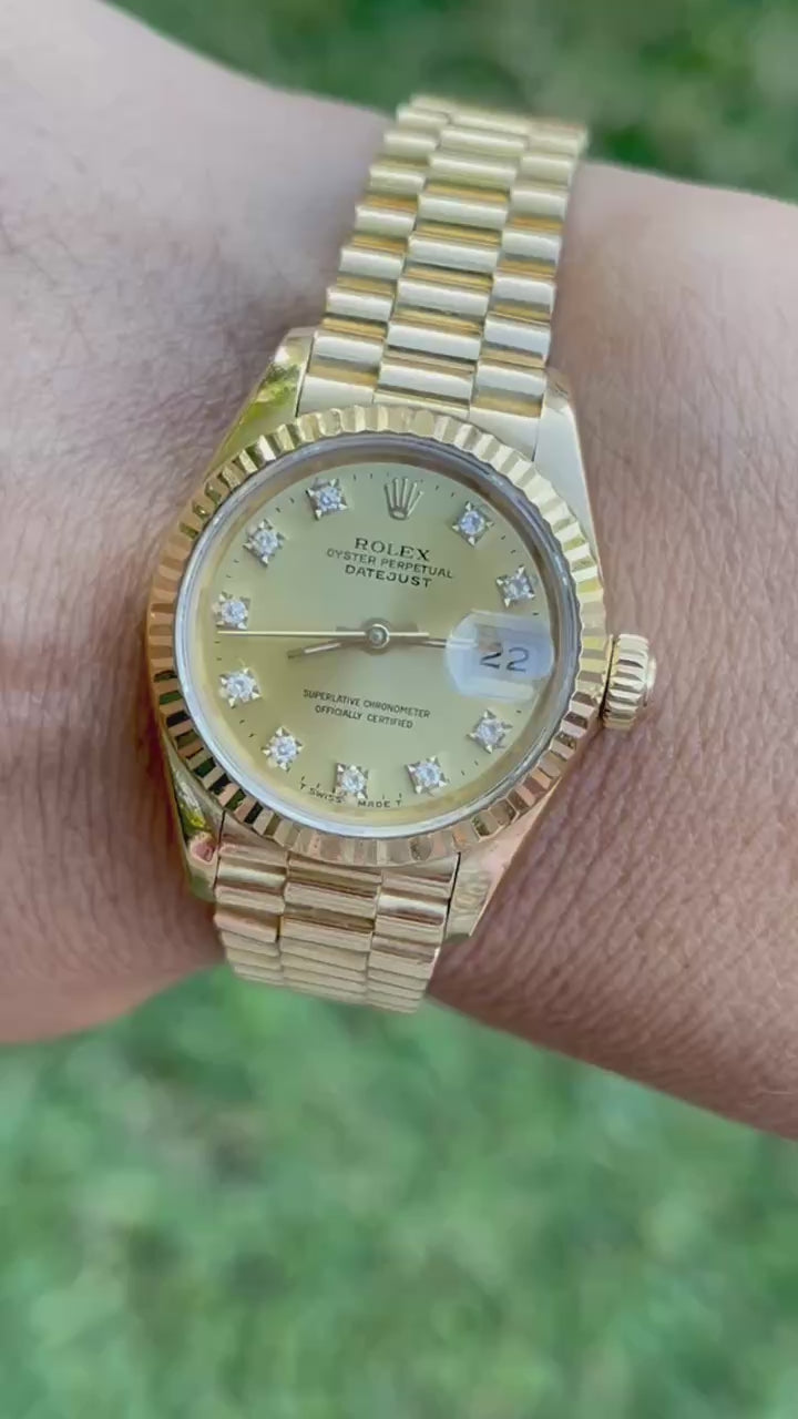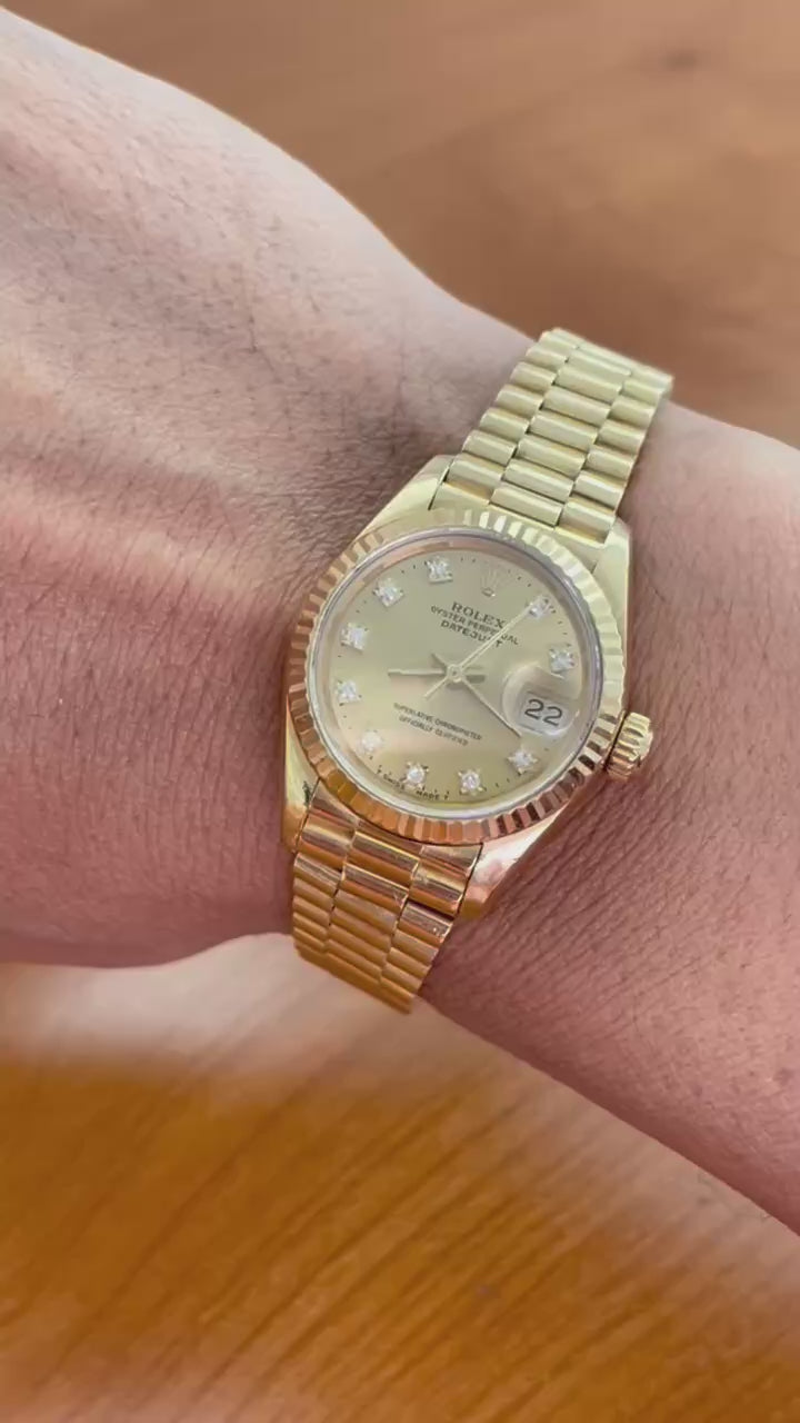 Presidential Rolex Datejust 69178 18K Yellow Gold Watch 26mm Champagne Diamond Dial.