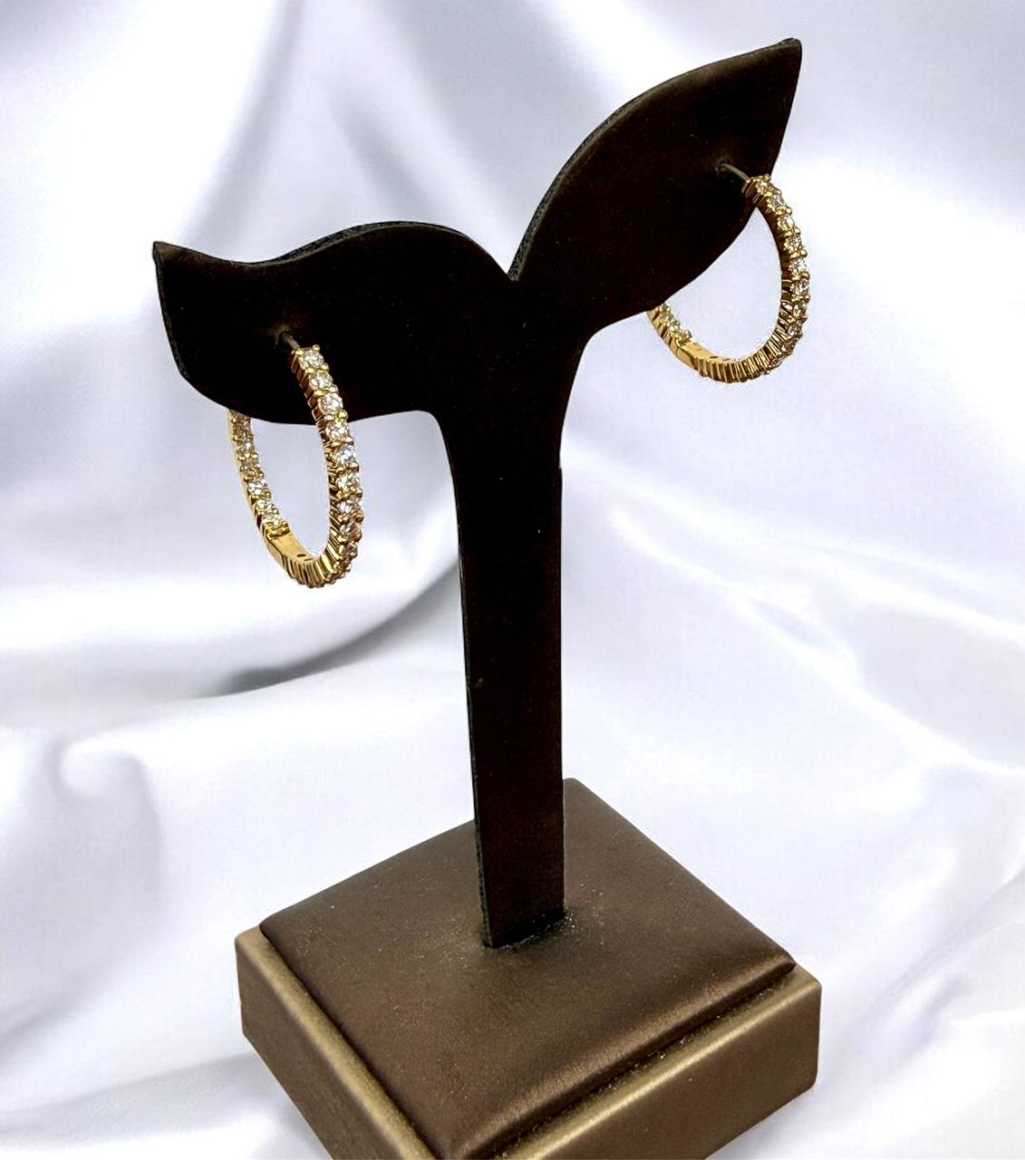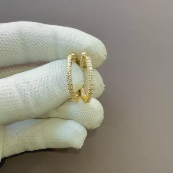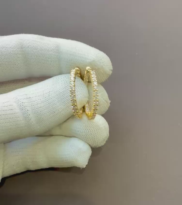Indulge in the timeless elegance of these authentic Roberto Coin diamond hoop earrings. Crafted in luxurious 18-karat yellow gold, these stunning hoops feature a brilliant inside/outside design, ensuring dazzling sparkle from every angle. The earrings showcase 1.53 carats of natural, high-quality diamonds, meticulously prong-set to enhance their radiance.