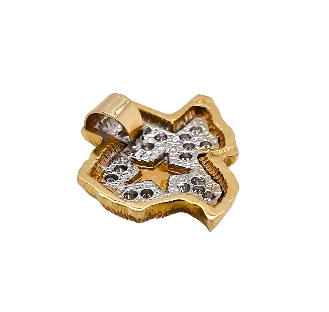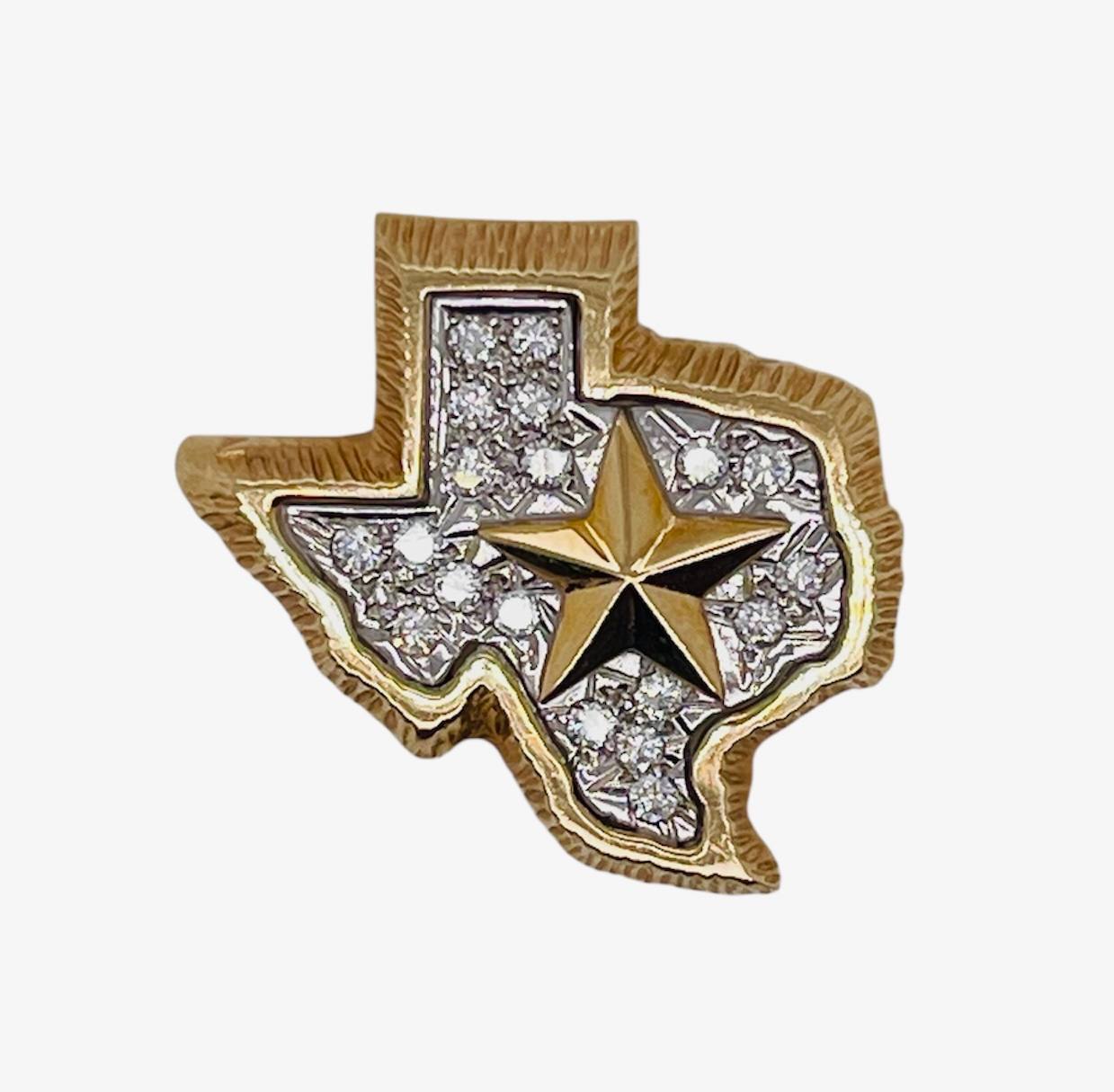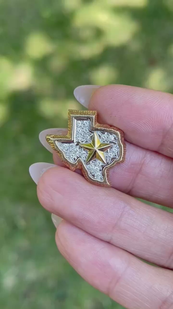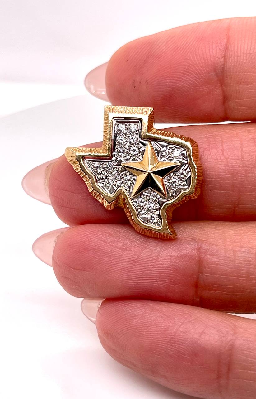 Vintage 14k Solid Two-Tone Gold 0.35 Ct Natural Diamond Texas Map Lone Star State Pendant