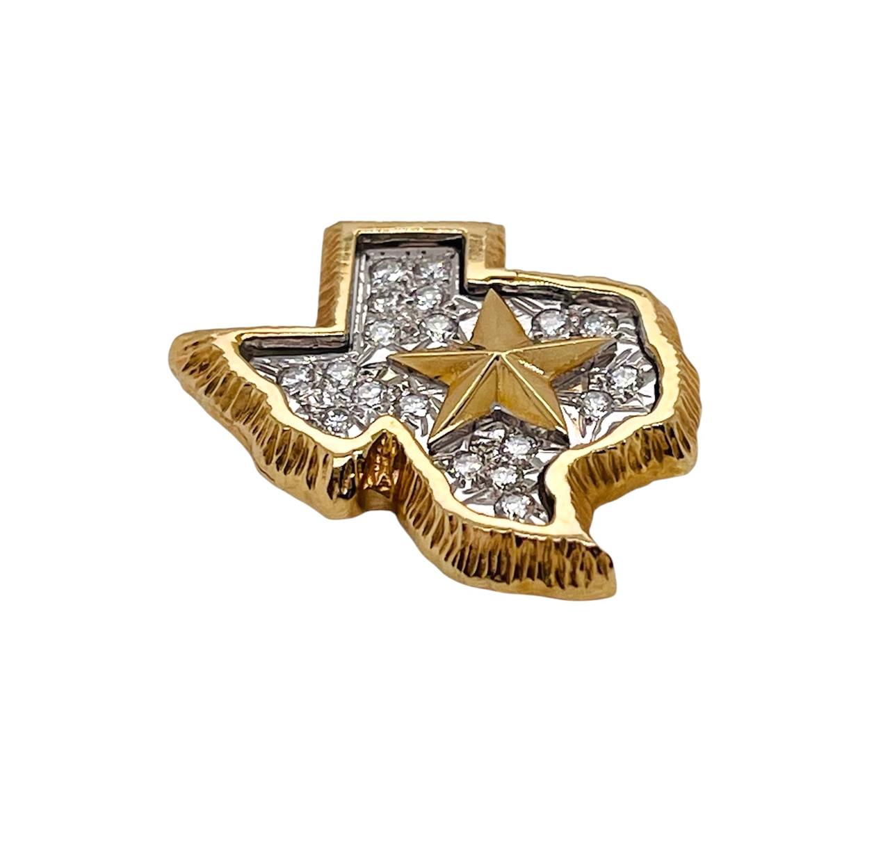 Elegant and unique Vintage 14k Solid Two-Tone Gold Natural Diamond Texas Map Lone Star State Pendant.