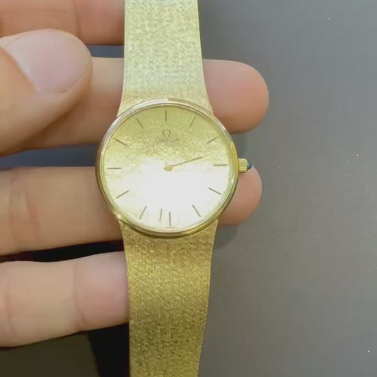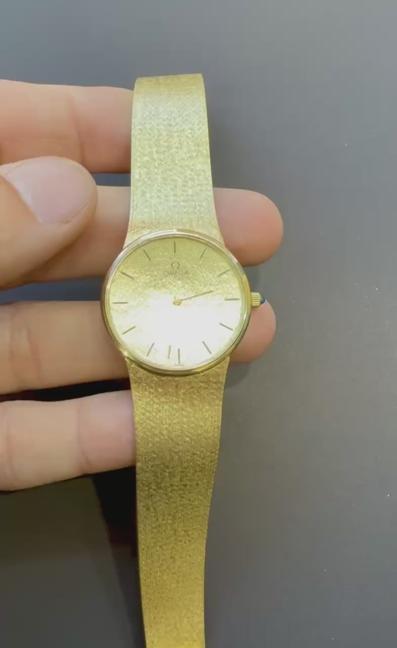 VINTAGE OMEGA Solid 14K Yellow Gold Quartz Watch Integrated Mesh Bracelet