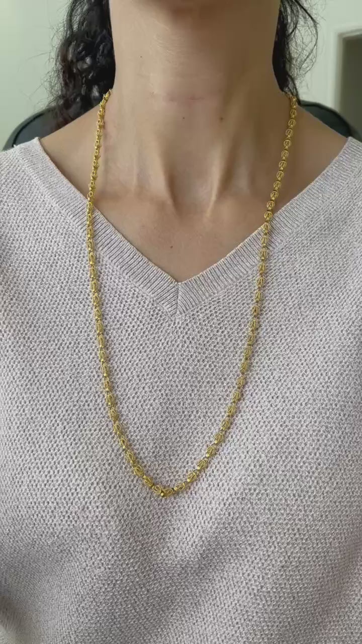 Vintage 18k Yellow Gold Hand-made Link Yazdi Chain Necklace 27 Gr 29 inches